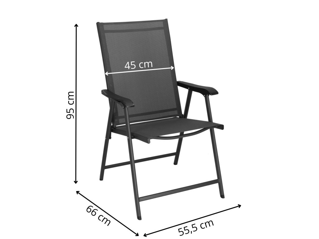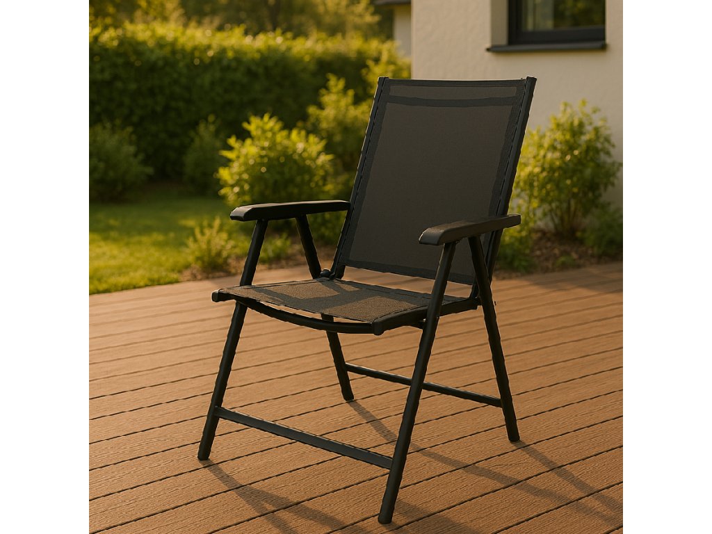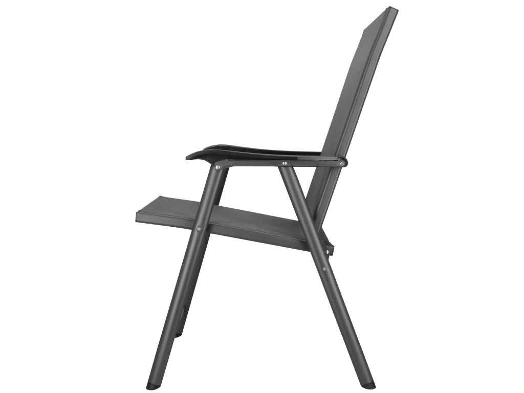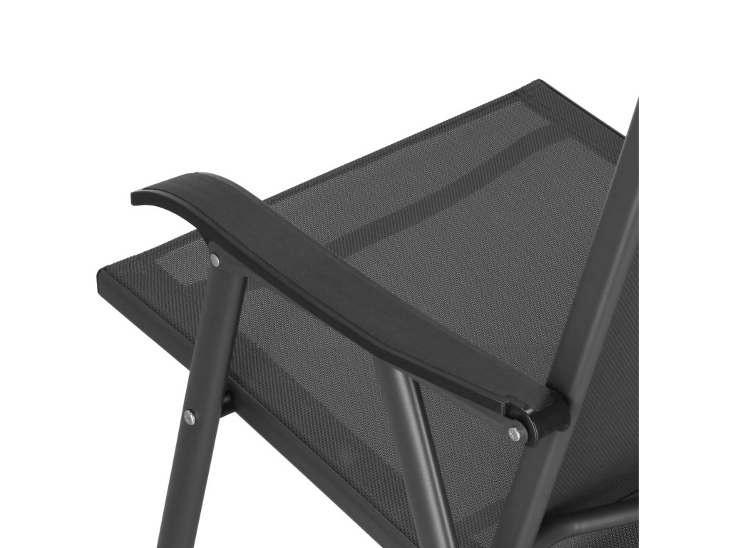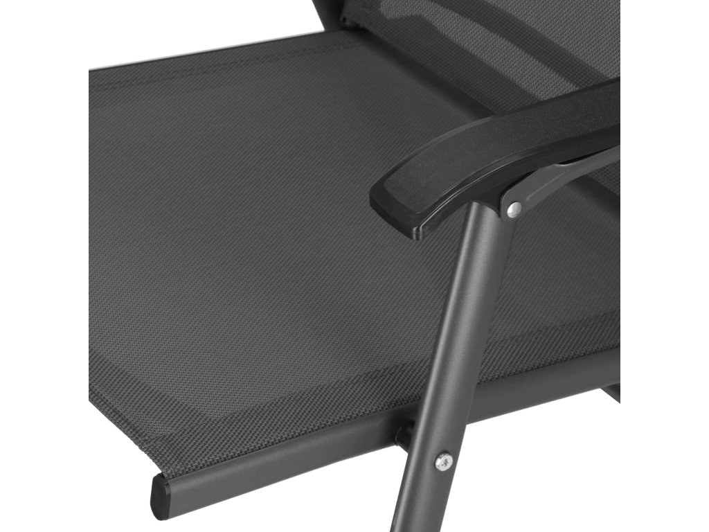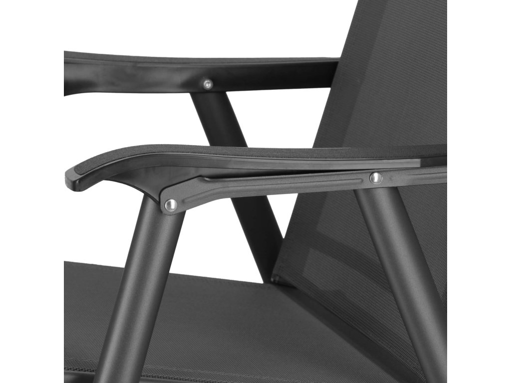 - Materiál: kov (konštrukcia); 100% textilene; plast (podrúčky)