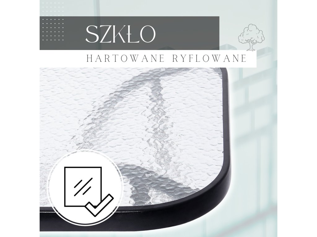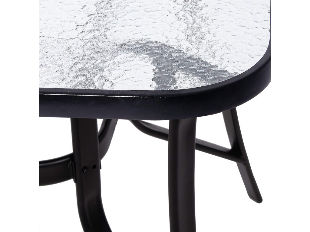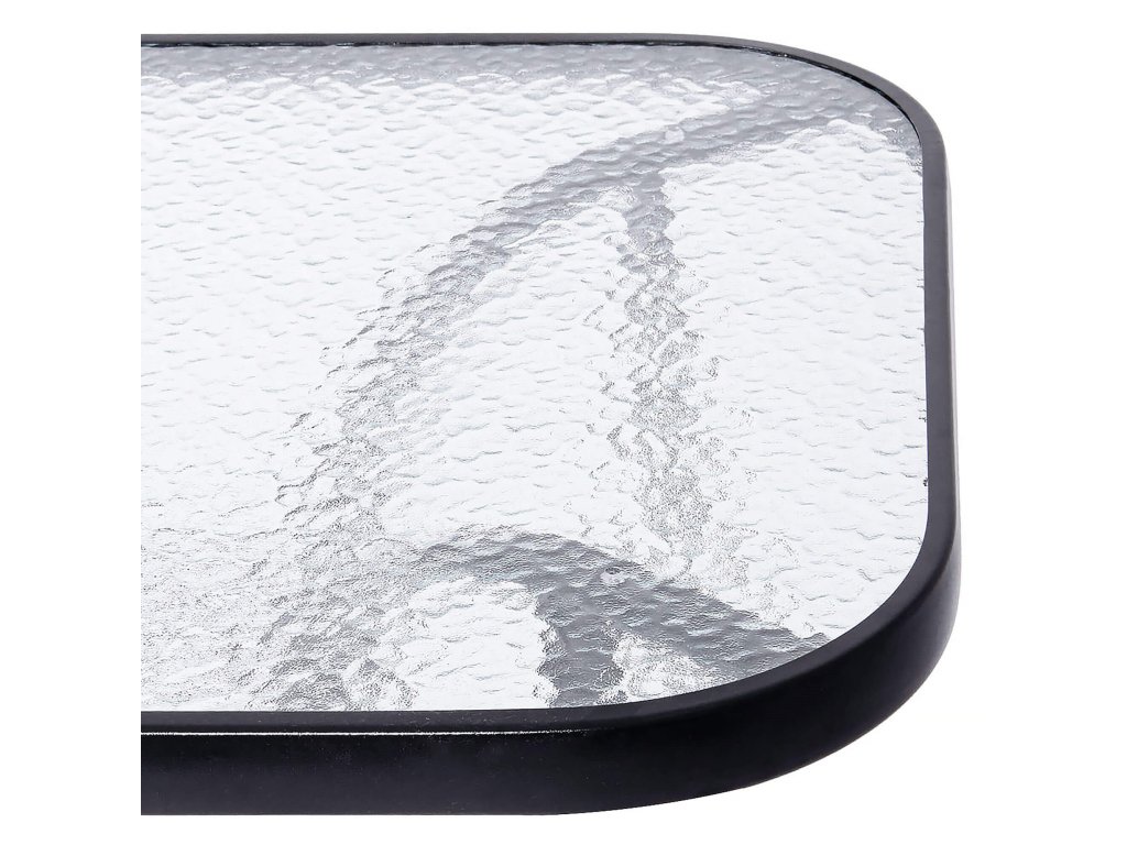 - Material: powder-coated metal, clear tempered glass with texture