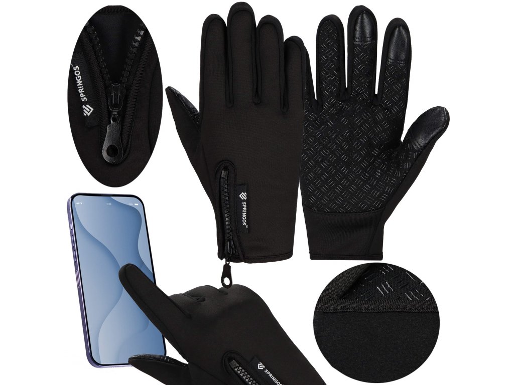 - Výhody: protišmykový povlak z vnútornej strany dlane, dotykový povlak na dvoch prstoch, zips na reguláciu otvoru na ruku