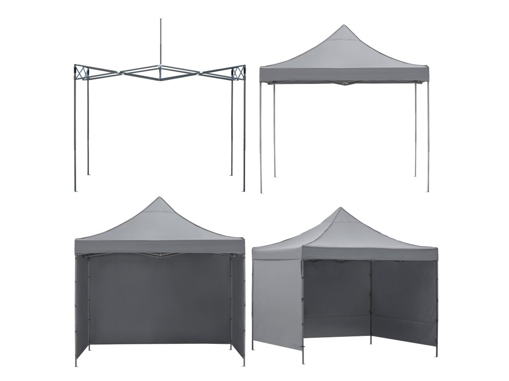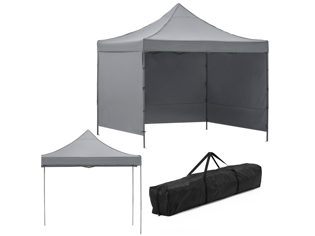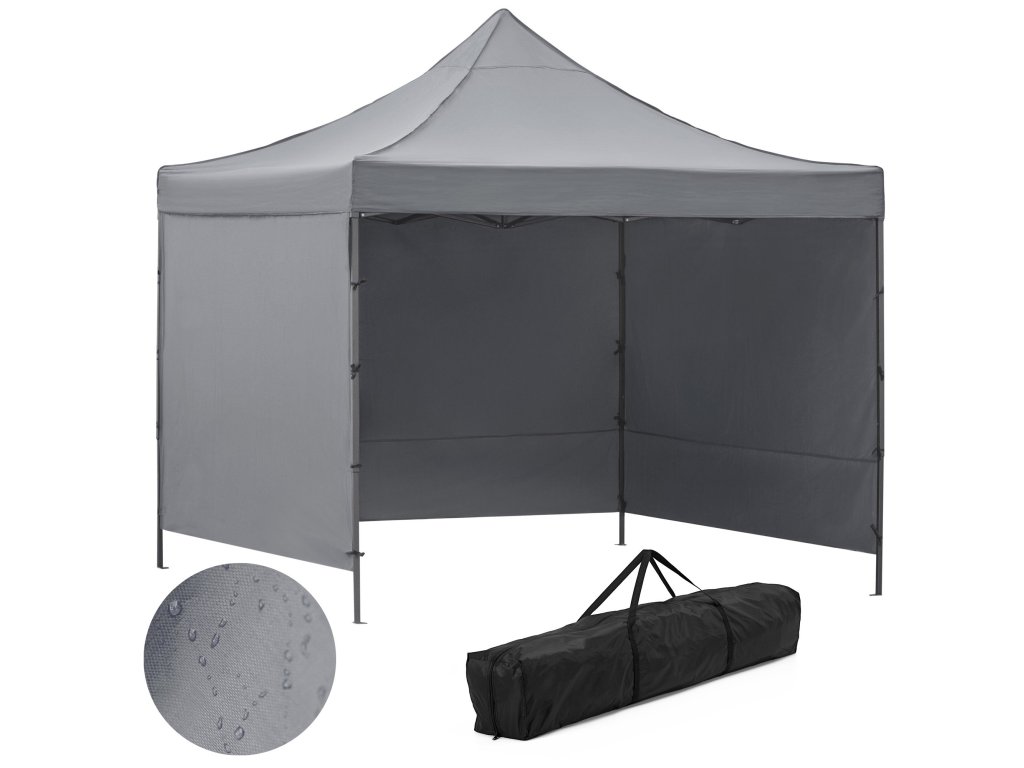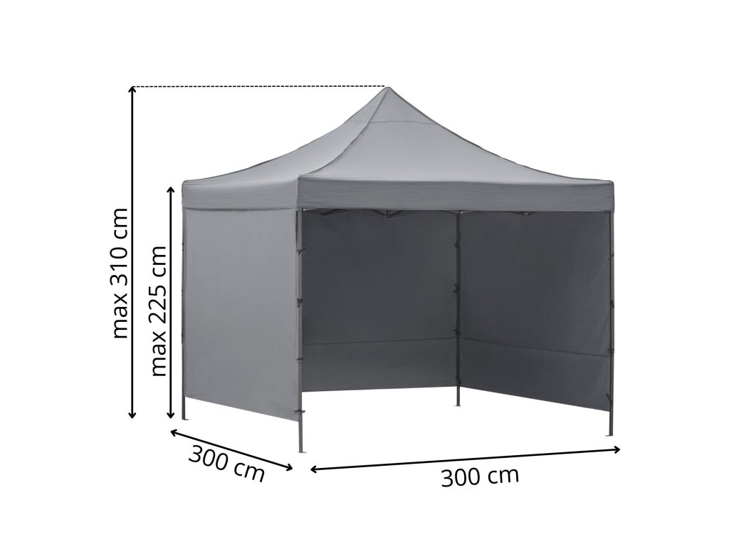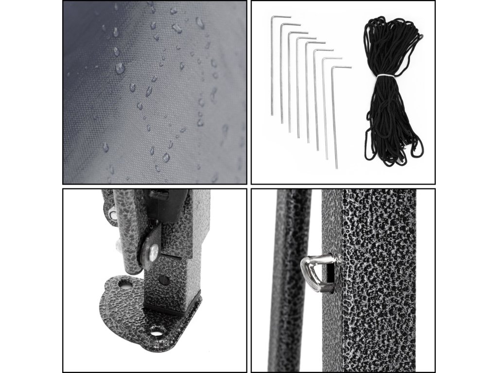 - V balení: strecha, 3 x stena 3 m, rám, obal s rukoväťami uzatvárateľný na zips, 8 kolíkov a 4 laná, návod