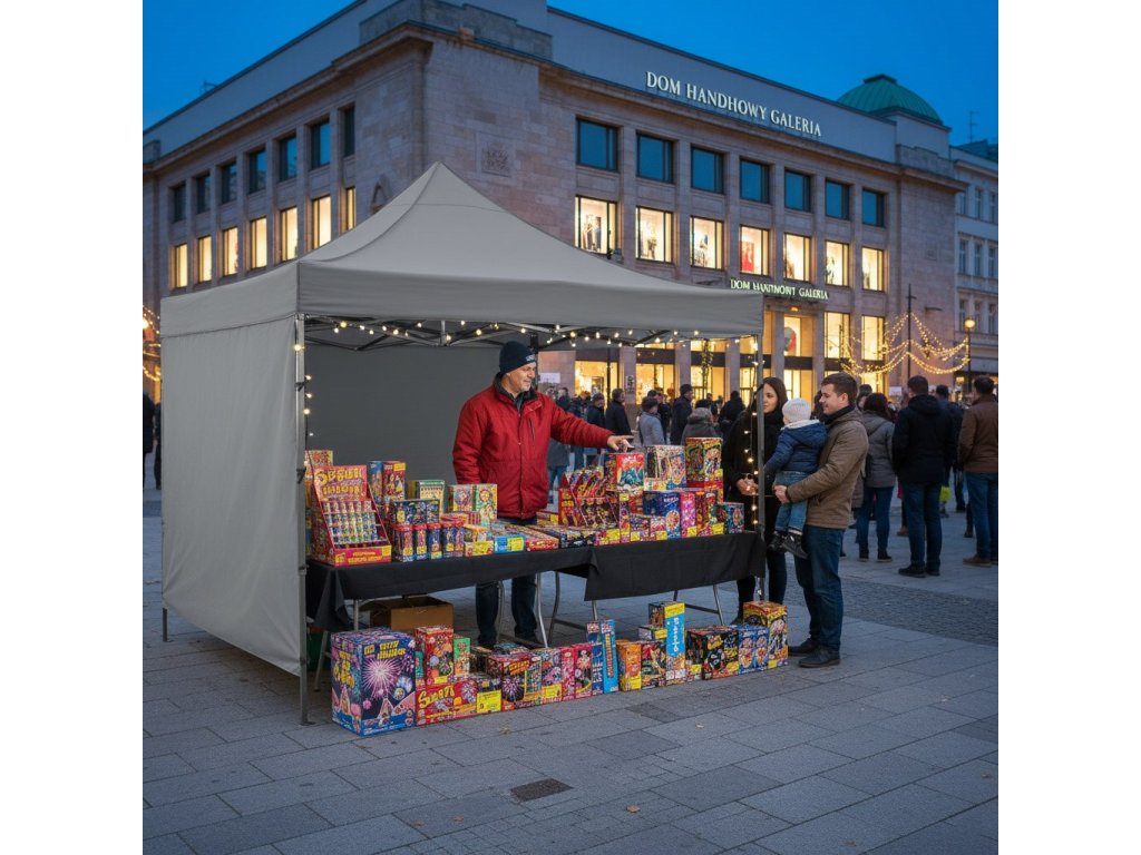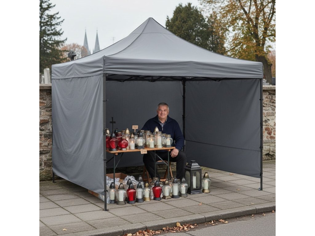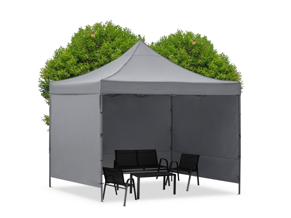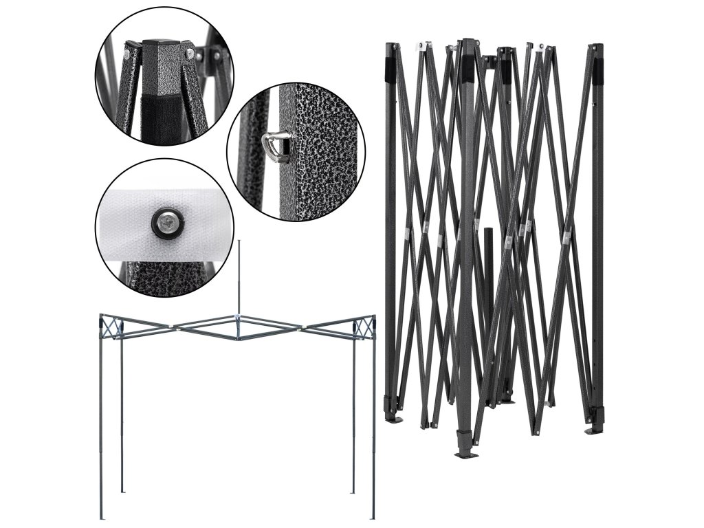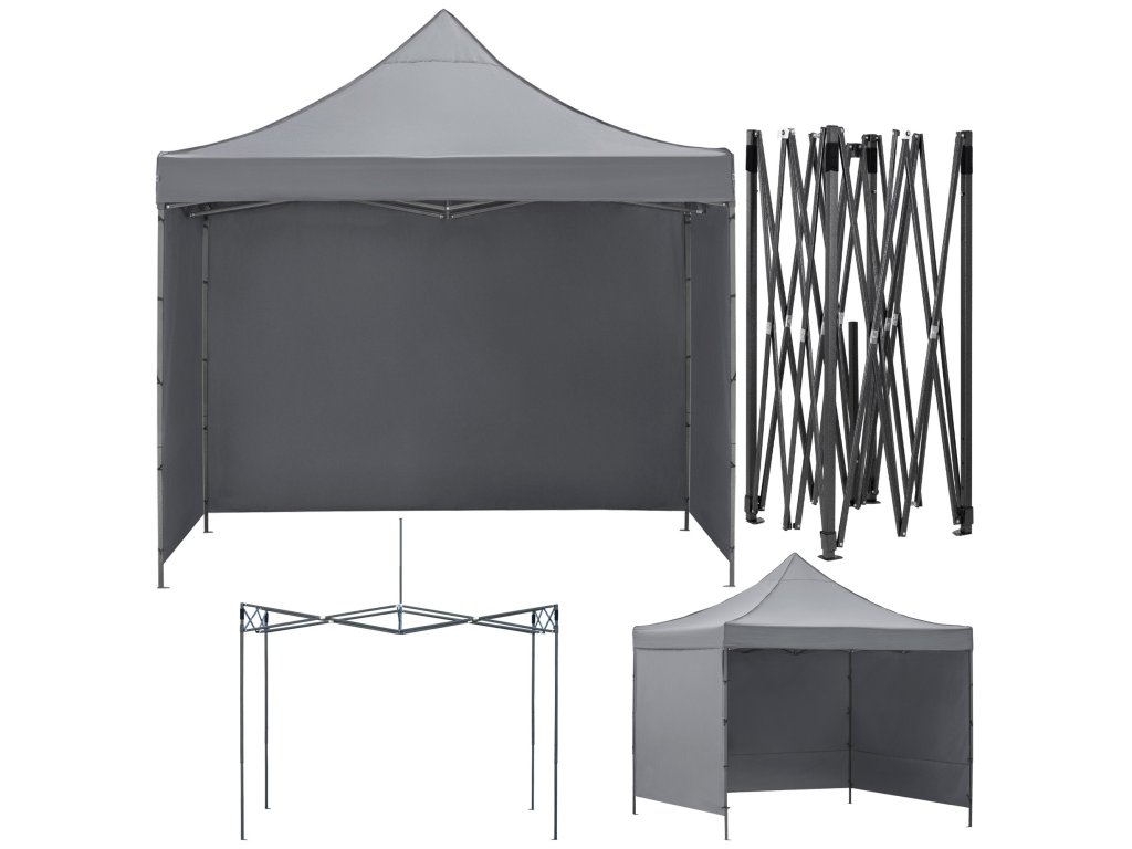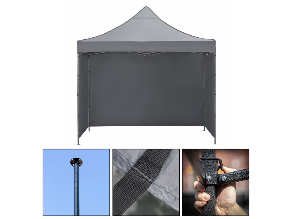 - V balení: strecha, 3 x stena 3 m, rám, obal s rukoväťami uzatvárateľný na zips, 8 kolíkov a 4 laná, návod