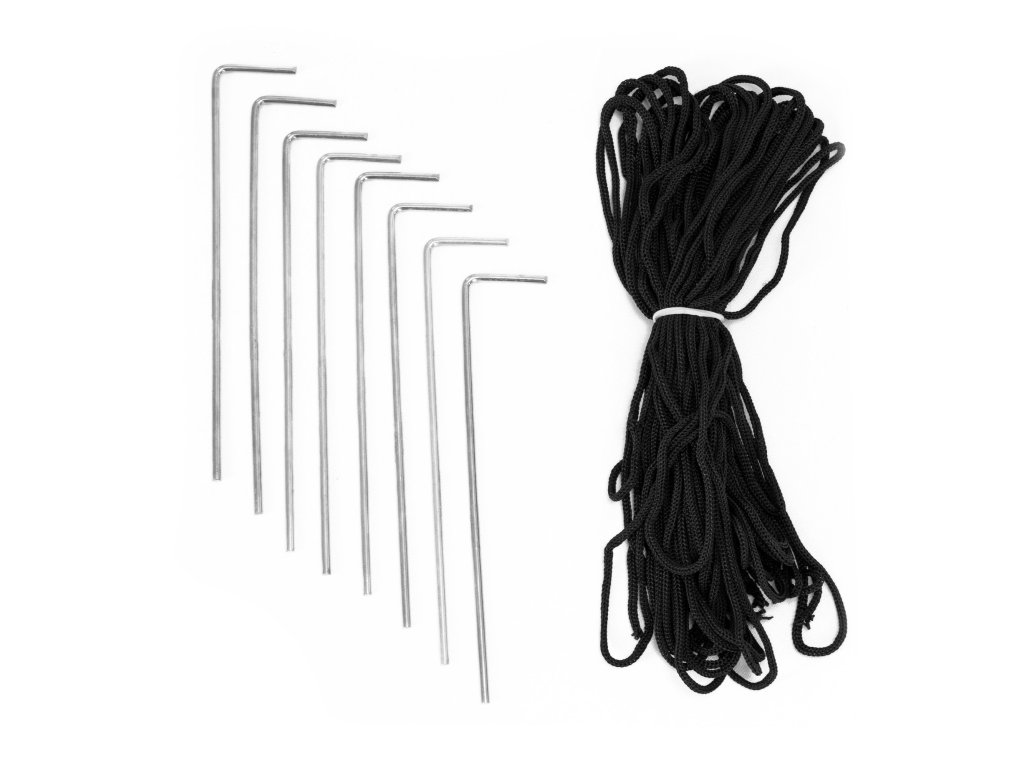 - V sade: strecha, 3 x stena 3 m s oknom,1 x stena 3 m so zipsom, rám, obal s úchytkami zatváraný na zips, 8 kolíkov a 4 lanká, návod