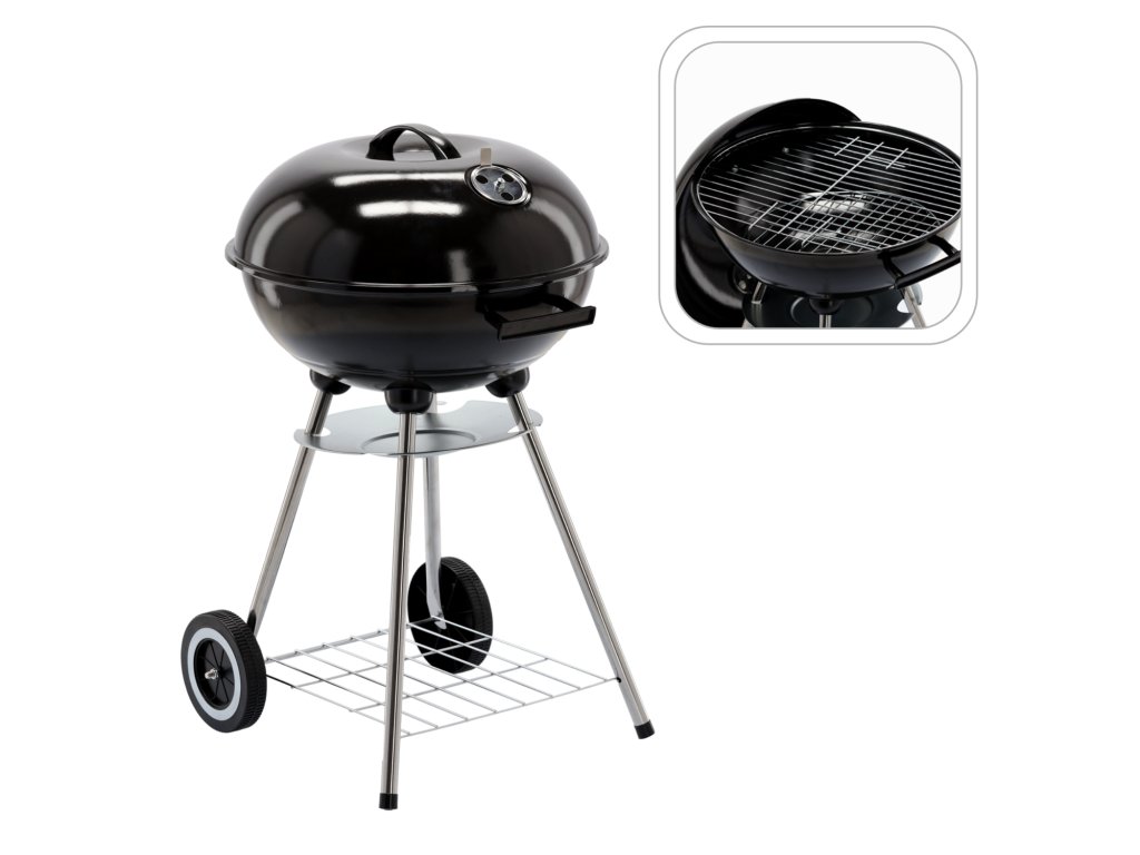 GUĽATÝ UHOĽNÝ GRIL S POKRIEVKOU A KOLIESKAMI 46 x 44 x 71 CM *5290