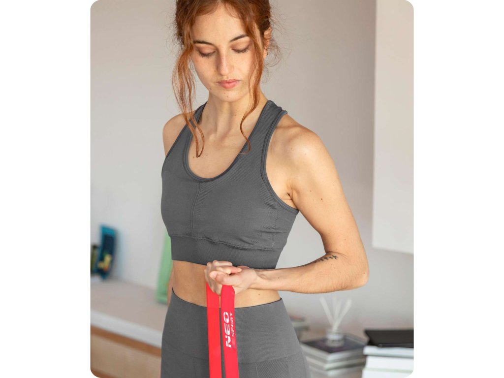 Pohodlný tréning doma! Na tréning už nemusíte opustiť domov. Sada odporových pásov umožňuje pohodlné a efektívne cvičenie v pohodlí vášho domova, prispôsobené vášmu rozvrhu a potrebám.