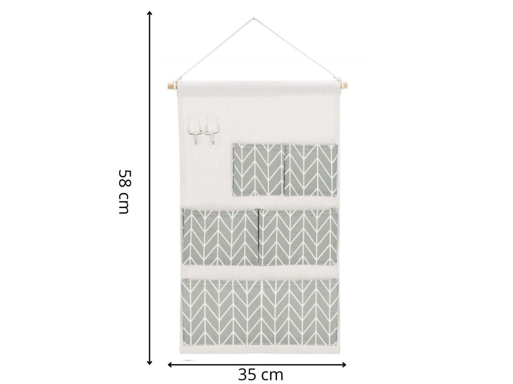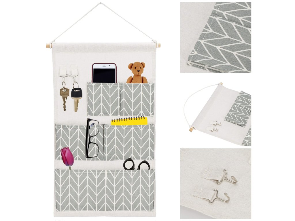 - Organizér má 5 pohodlných vreciek a 2 háčiky