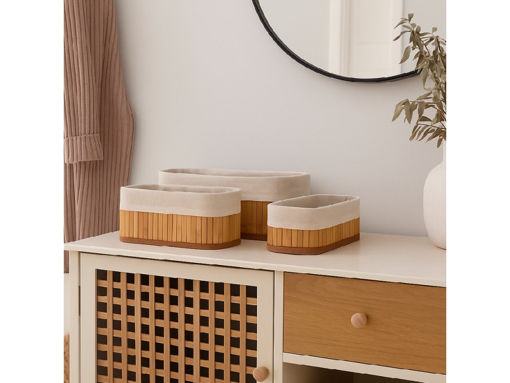 HA0152 BAMBUSOVÝ KOŠ NA SKLADOVANIE 3KS.