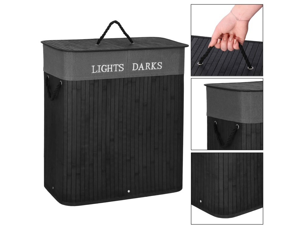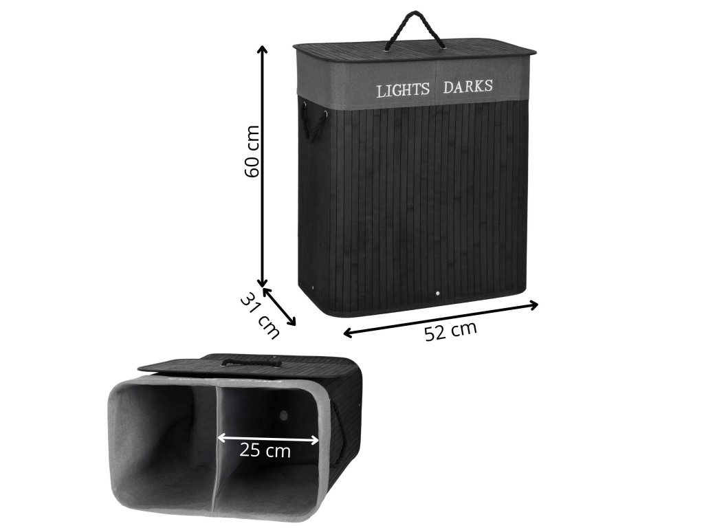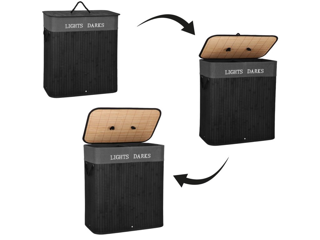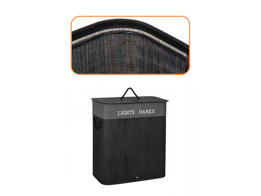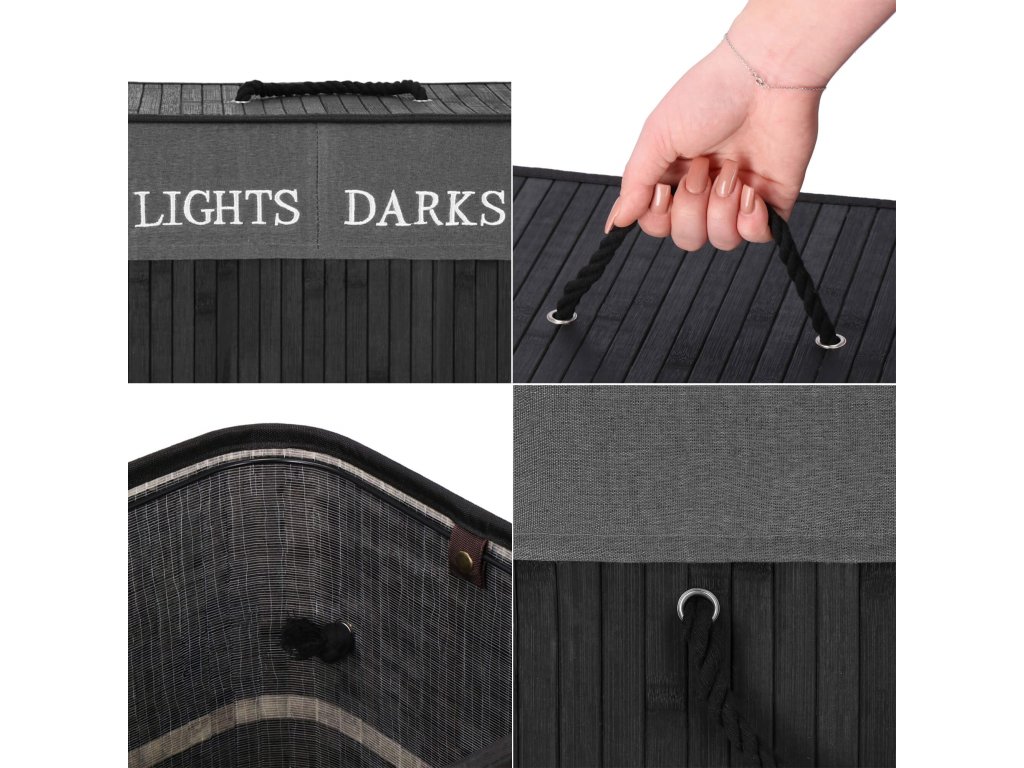 - Prvky v sade (5 prvkov): bambusový korpus, dno z MDF, horné vystuženie z kovového drôtu, vnútro z textílie, bambusový kryt