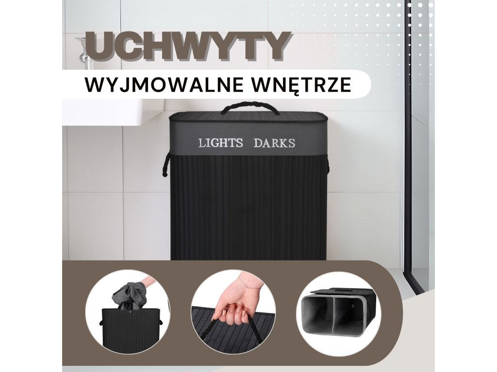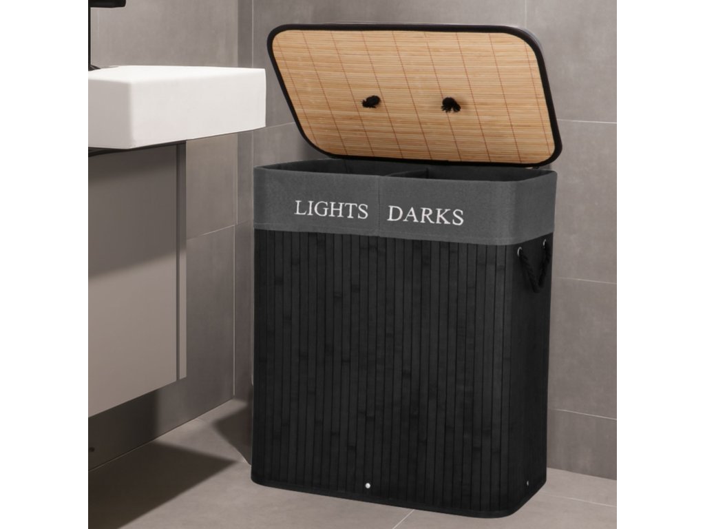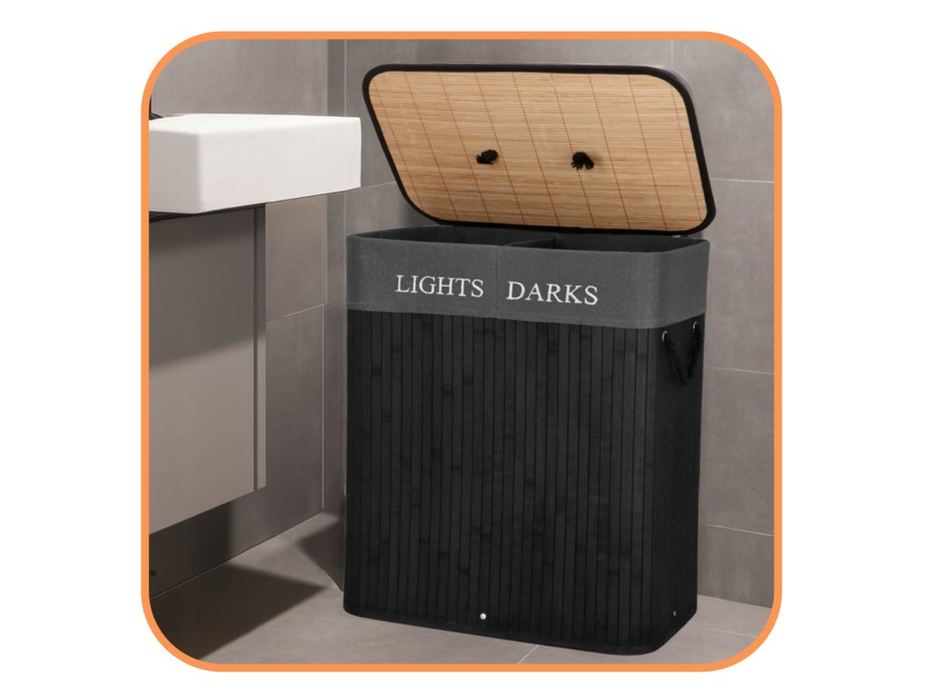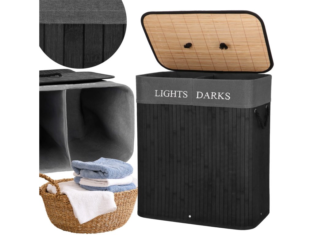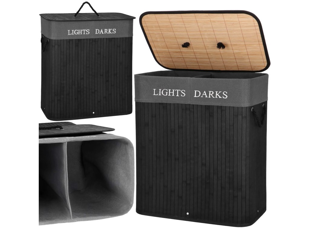 - Prvky v sade (5 prvkov): bambusový korpus, dno z MDF, horné vystuženie z kovového drôtu, vnútro z textílie, bambusový kryt