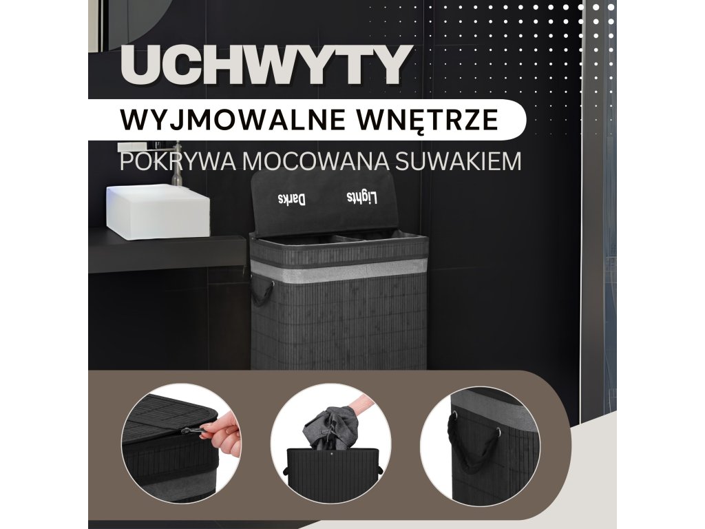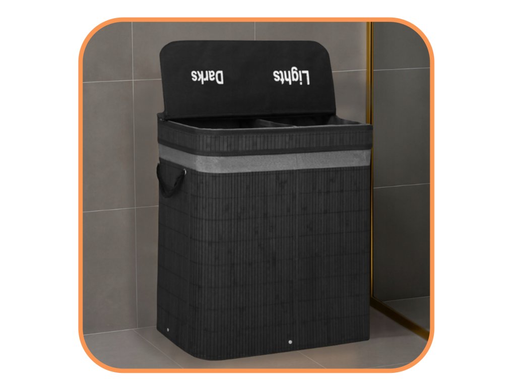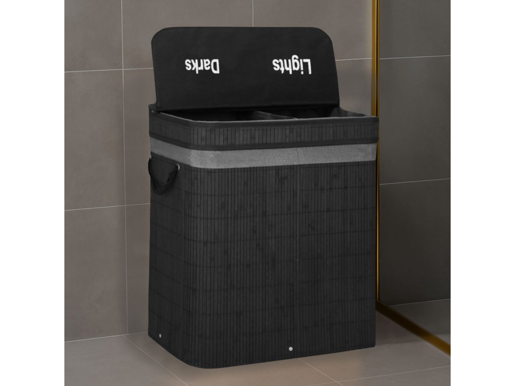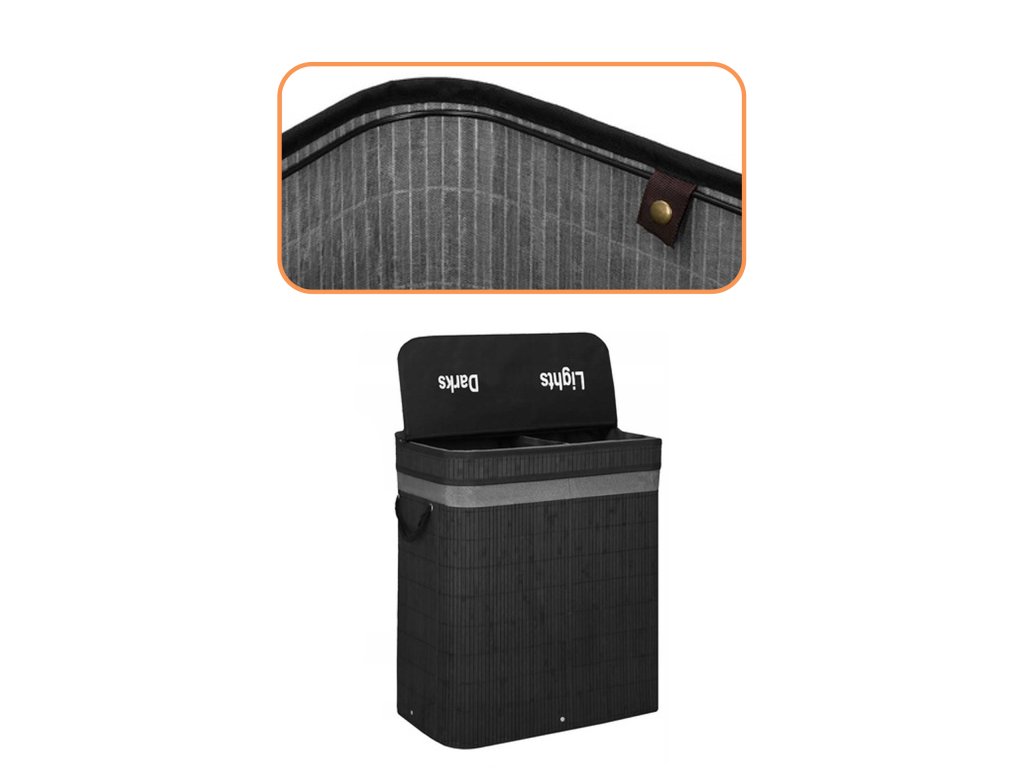 - Prvky v súprave (6 ks): bambusový korpus, dno z MDF, horné spevnenie z kovového drôtu, vnútro z tkaniny, bambusový kryt - 2 prvky