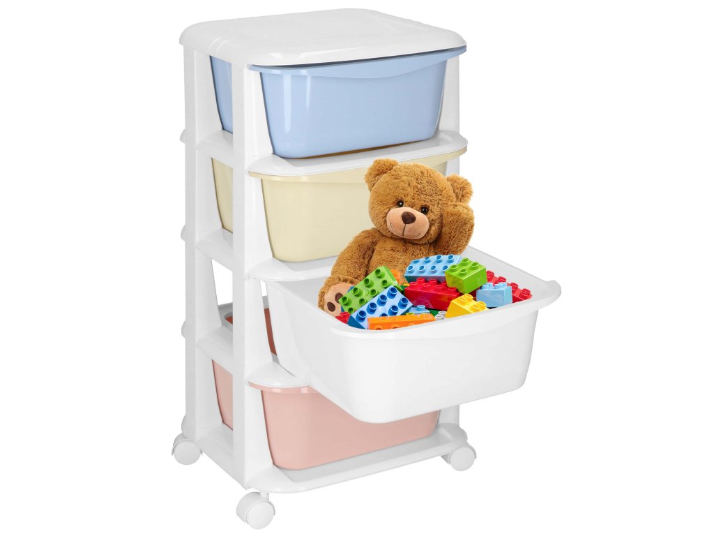 - Farby zásuviek: červená, biela, žltá, modrá (pastelové)