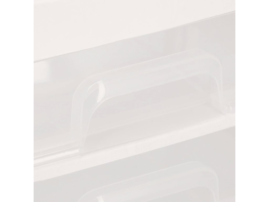 - 2 priehľadné zásuvky s úchytom rovnakej veľkosti (hĺbka: 19,5 cm, šírka: 25, výška: 7 cm)