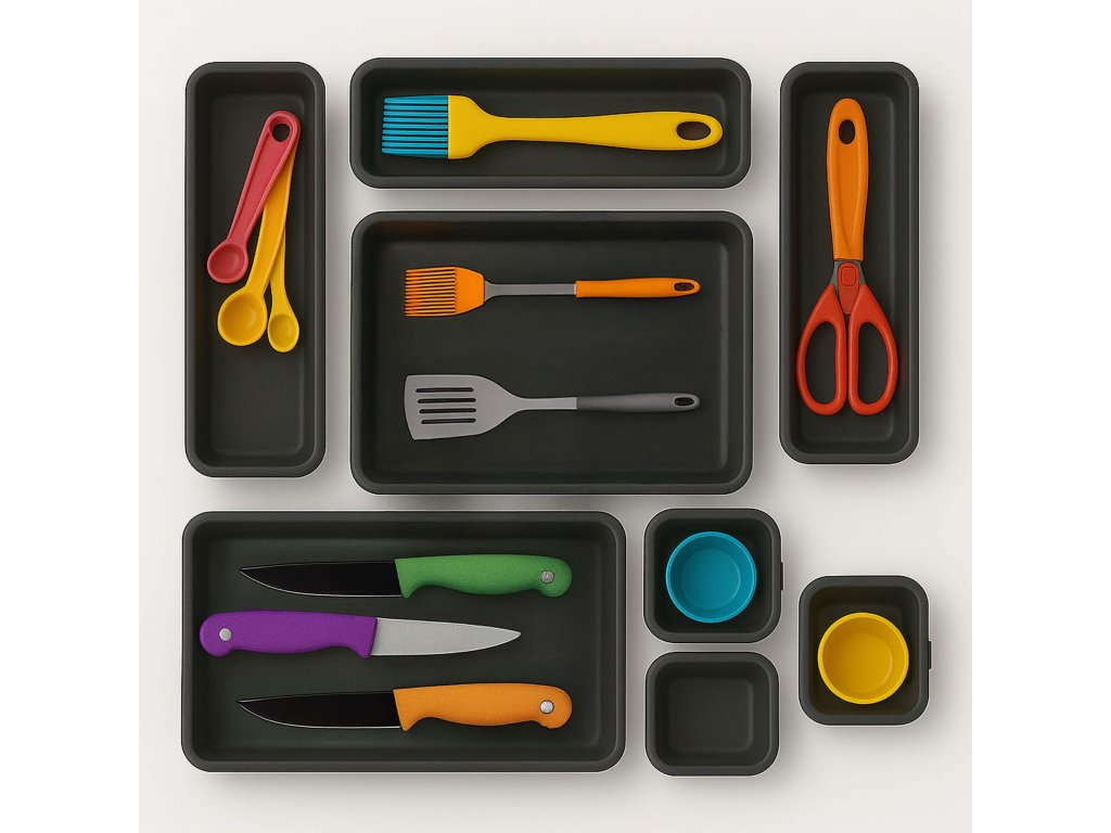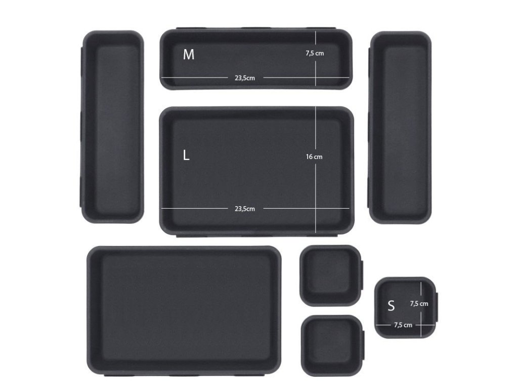 - 3x organizér veľkosti S: 7,5x7,5x4,5 cm