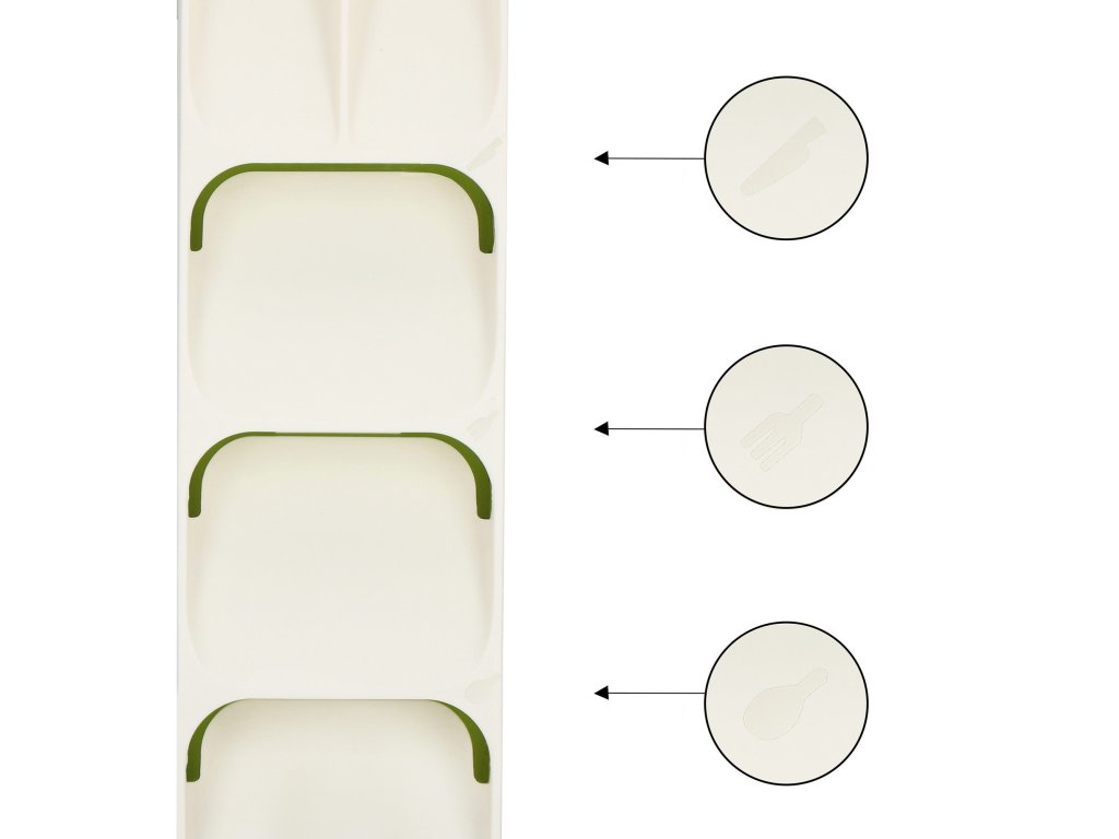 - Šírka priehradiek: 2x 5 cm, 3x 10 cm
