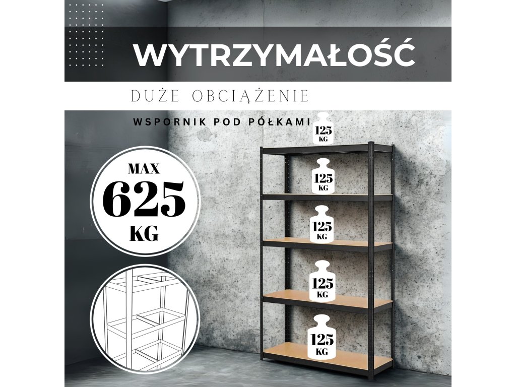 - Maximálne zaťaženie 1 police: 125 kg