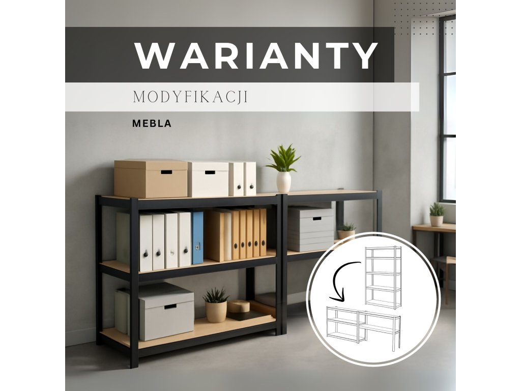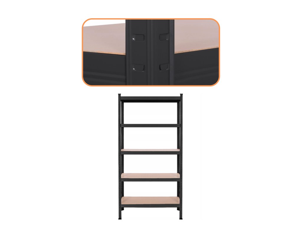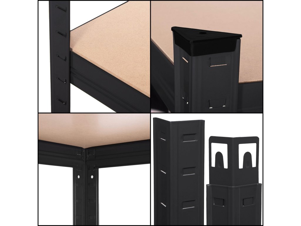 - Poličky je možné namontovať v ľubovoľných výškach - vertikálne prvky majú montážne otvory po celej výške, rozmiestnené každé 3 cm