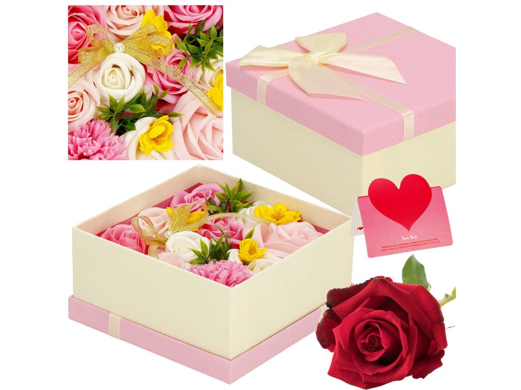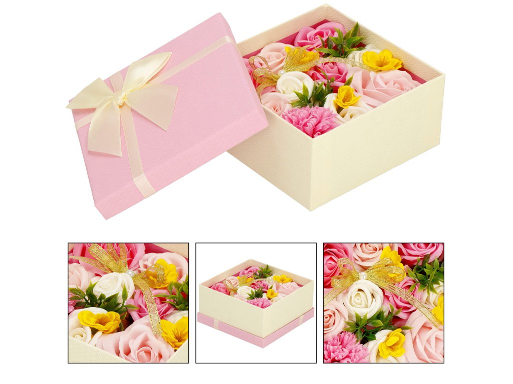- Súprava obsahuje krémovú stuhu dekoratívnu na vrchu balenia a zlatú vo vnútri