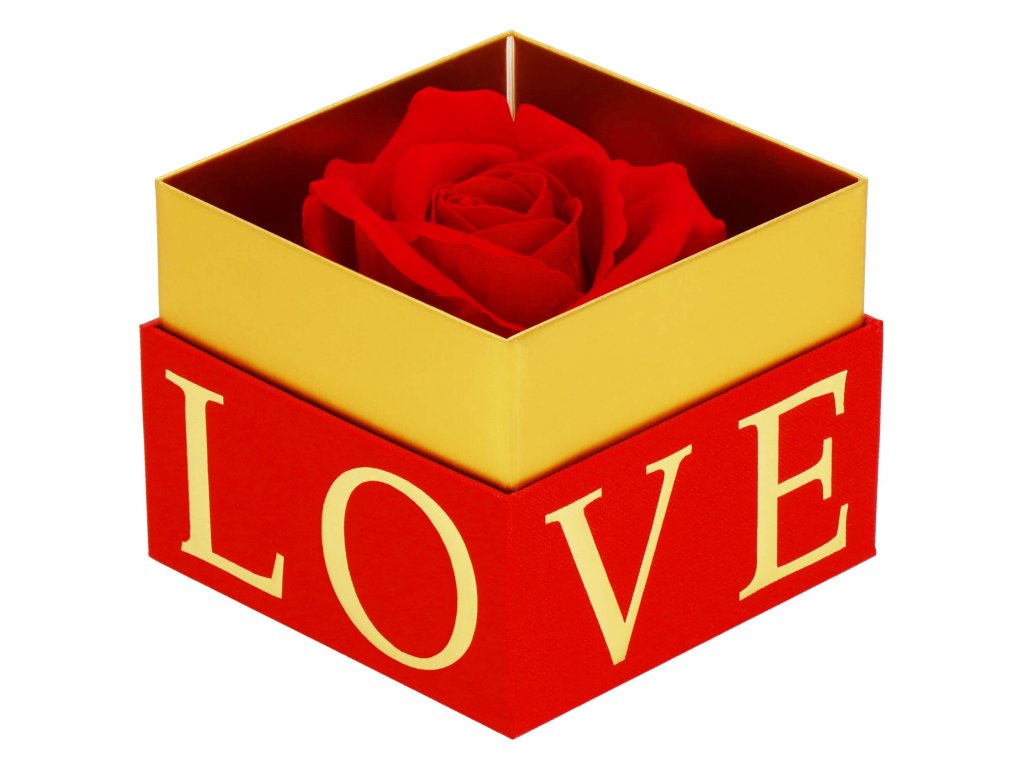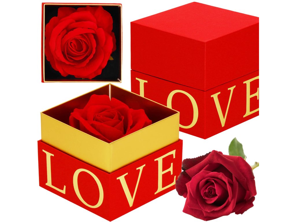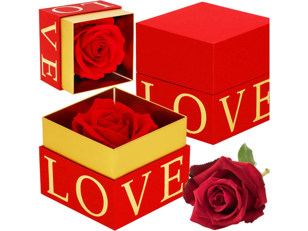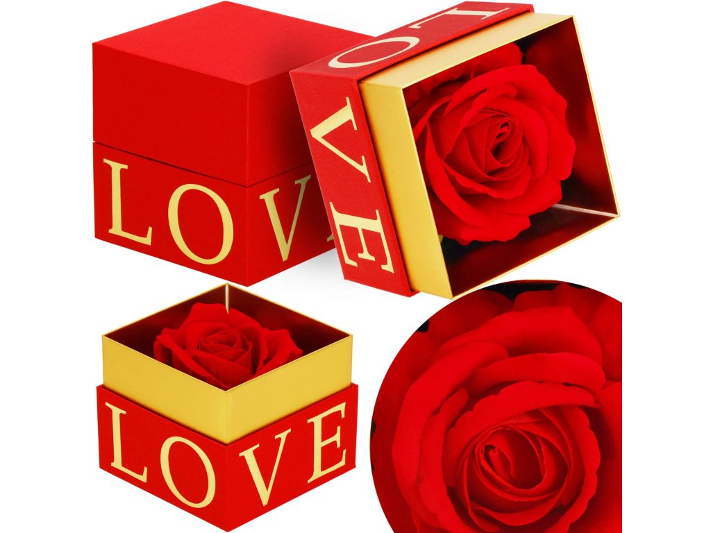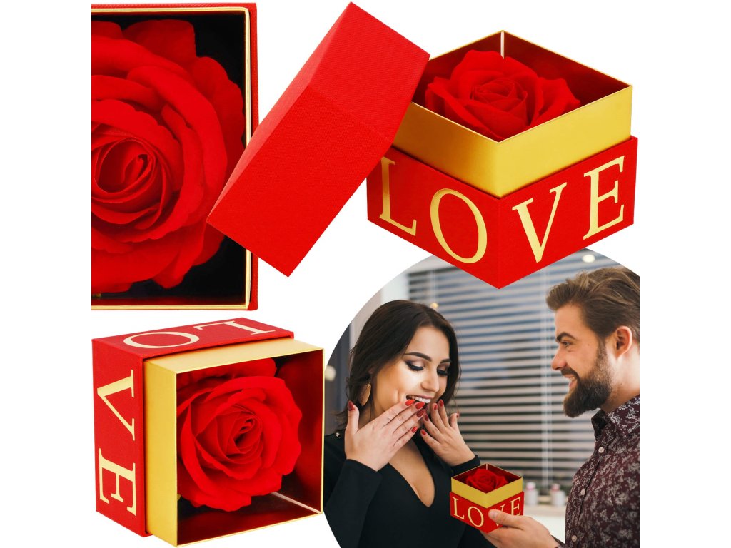 - Ruža pripevnená vo vnútri krabičky na mäkkom základe s funkciou vyberania