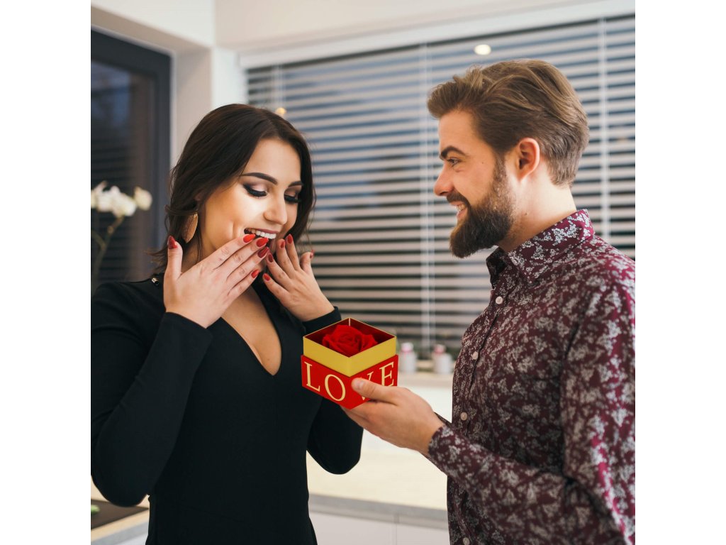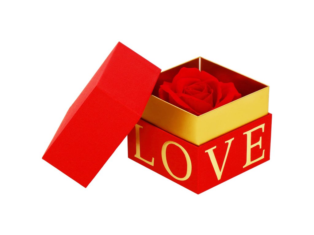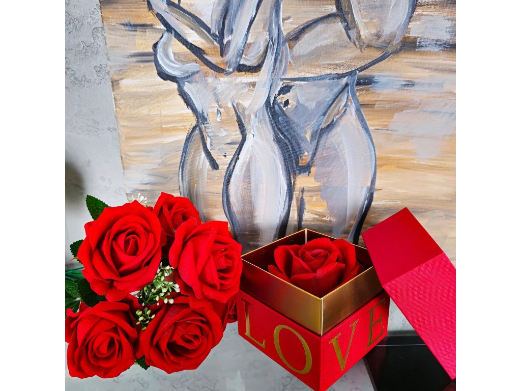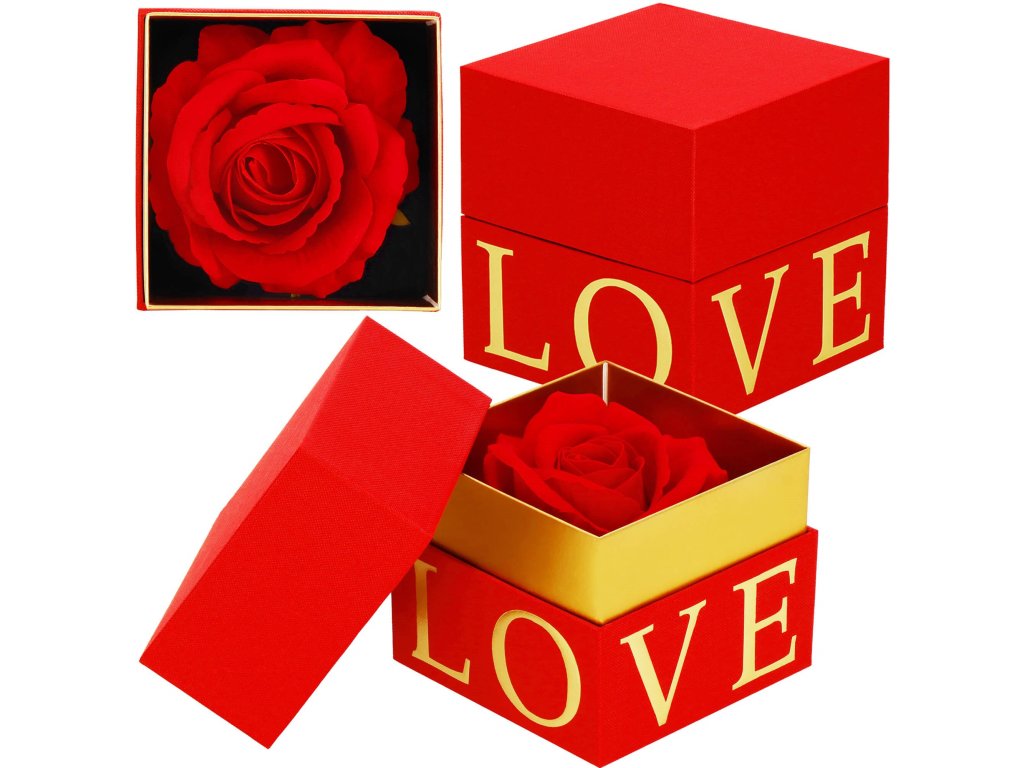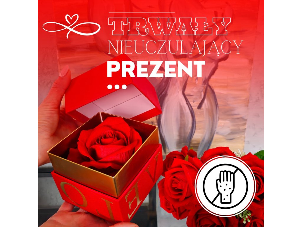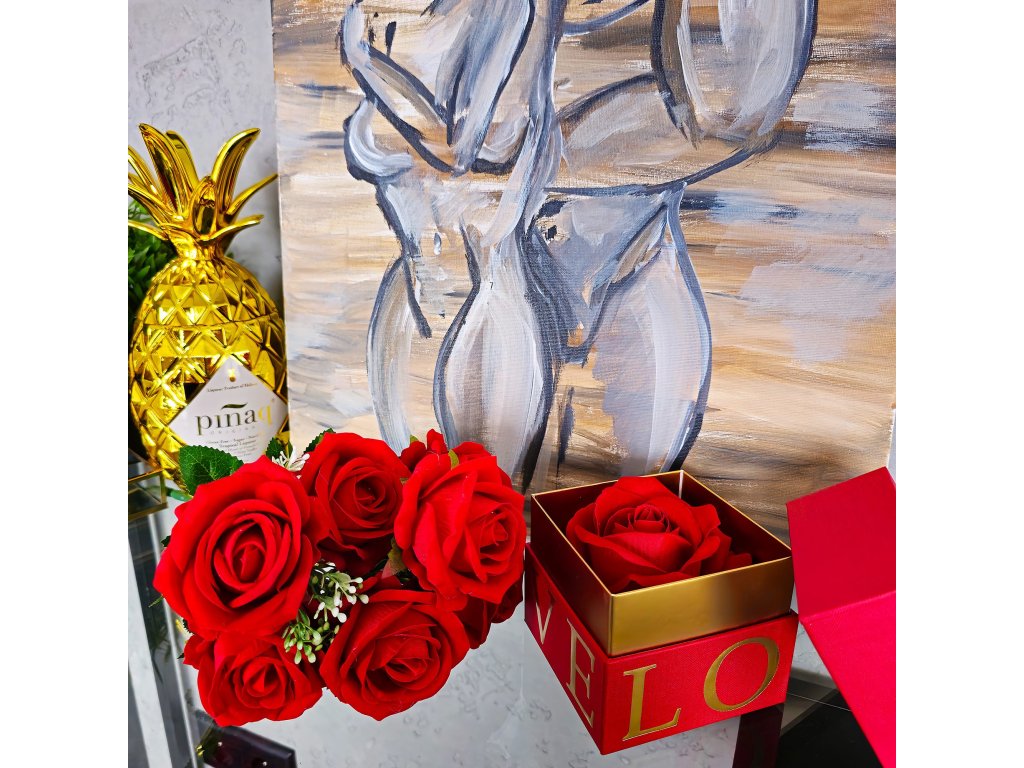 - Ruža pripevnená vo vnútri krabičky na mäkkom základe s funkciou vyberania
