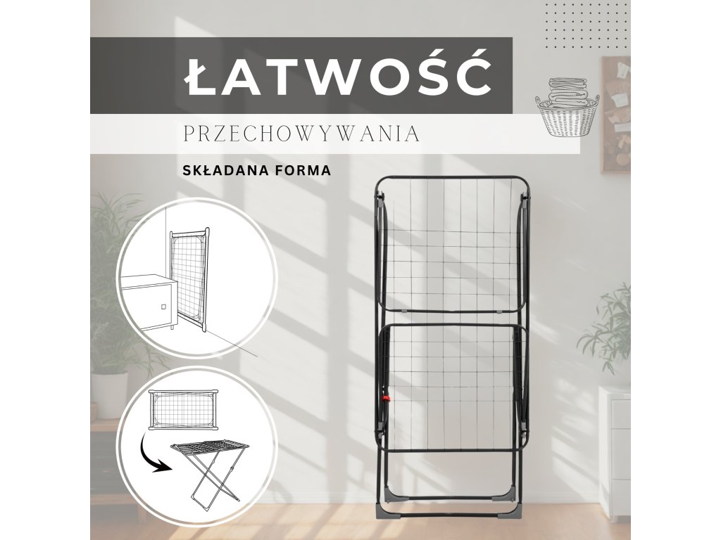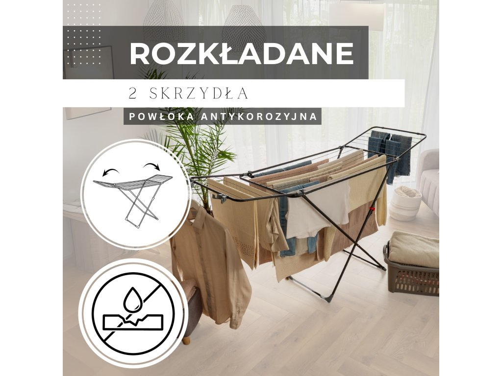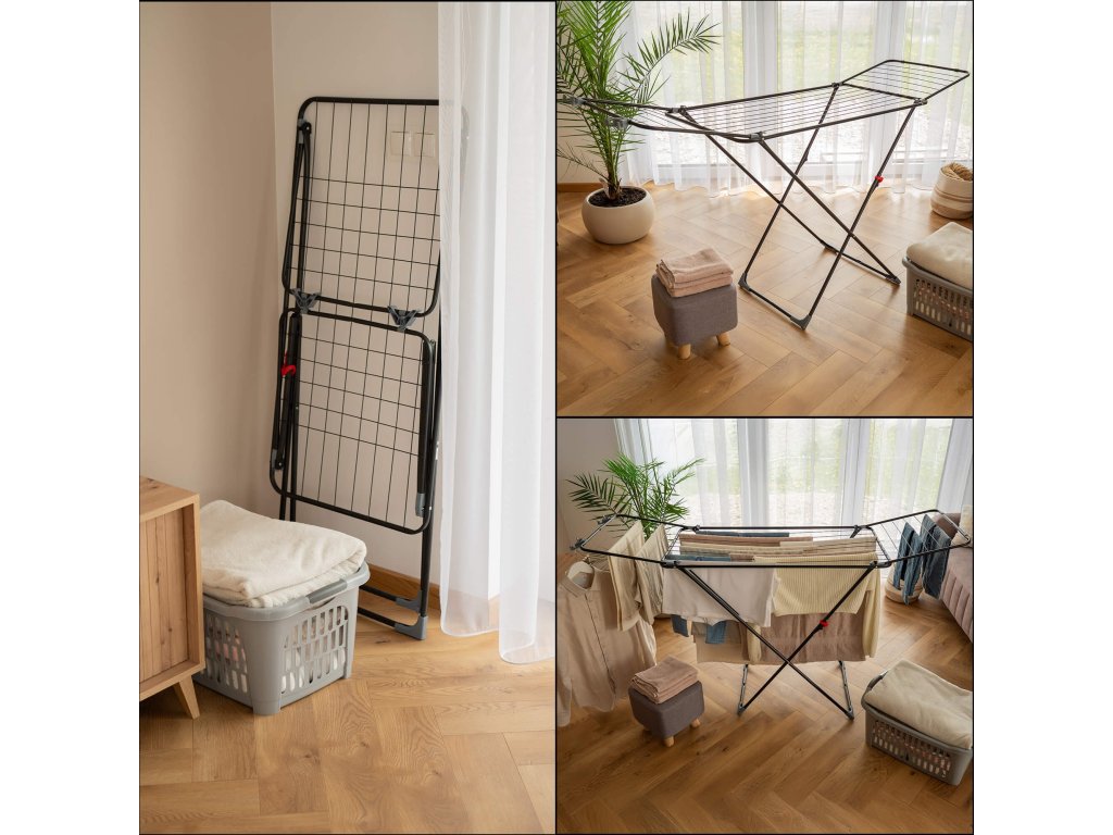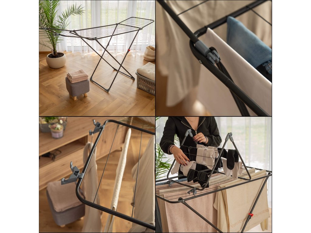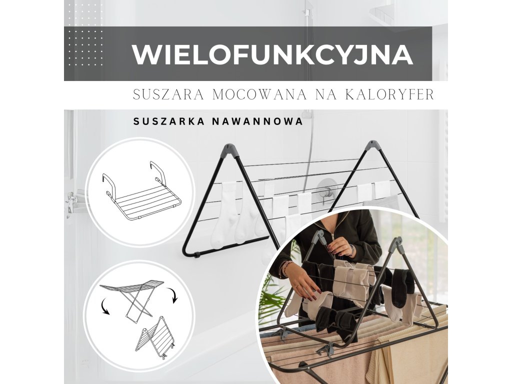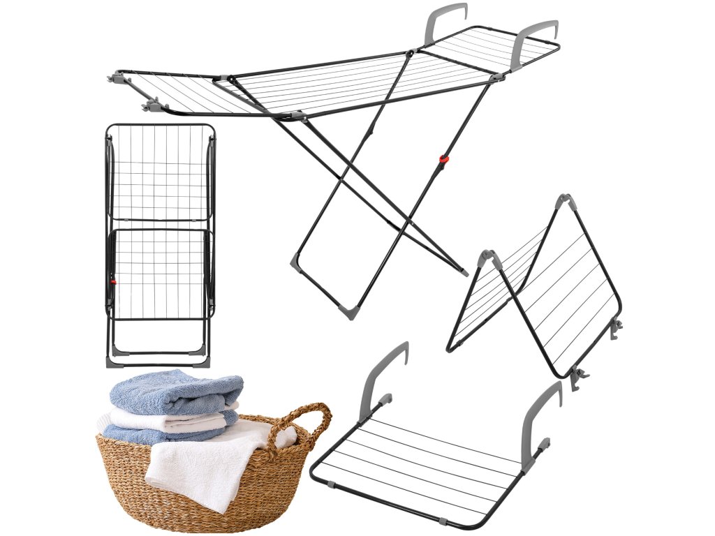 - Multifunkčný sušiak, skladá sa z centrálnej časti a 2 rozkladacích krídiel, jedno krídlo možno použiť ako sušiak na radiátor, zatiaľ čo dve krídla zložené dohromady tvoria sušiak na vaňu