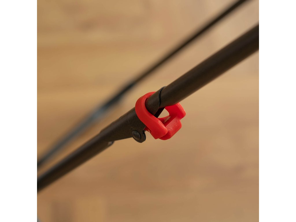 - Dodatkový plastový prvok v červenej farbe: blokácia skladania