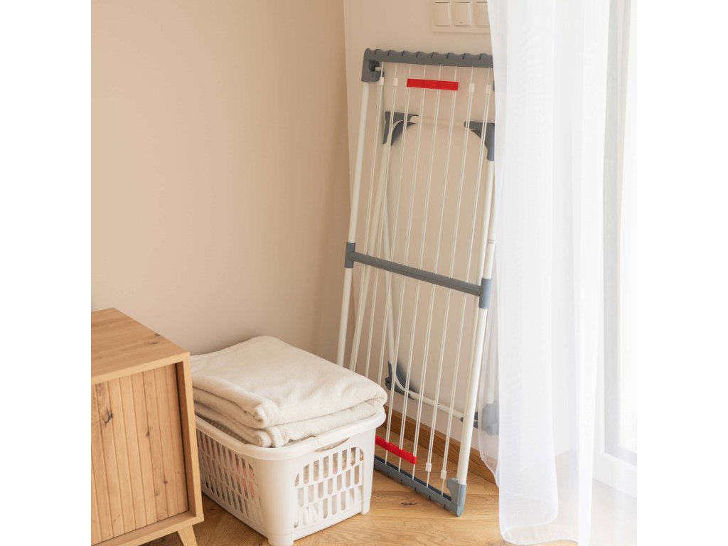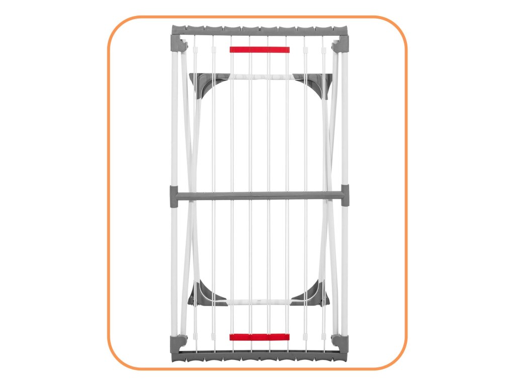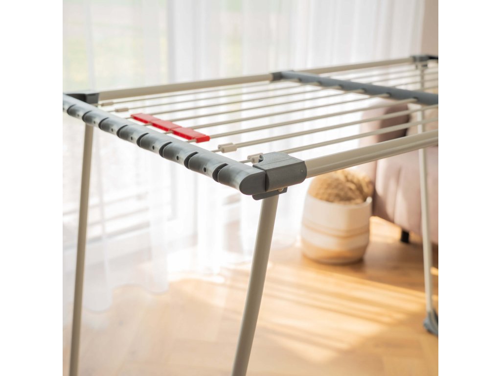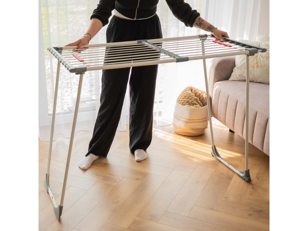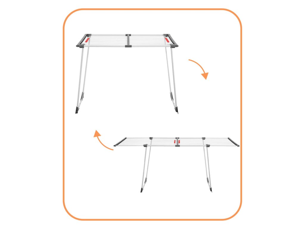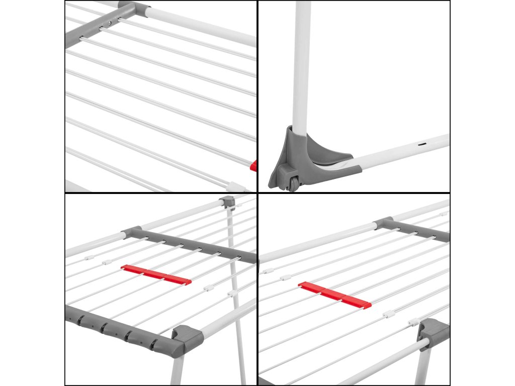 - Bočné prvky rámu majú štrbiny, v ktoré možno zavesiť drobné časti sušenej bielizne.