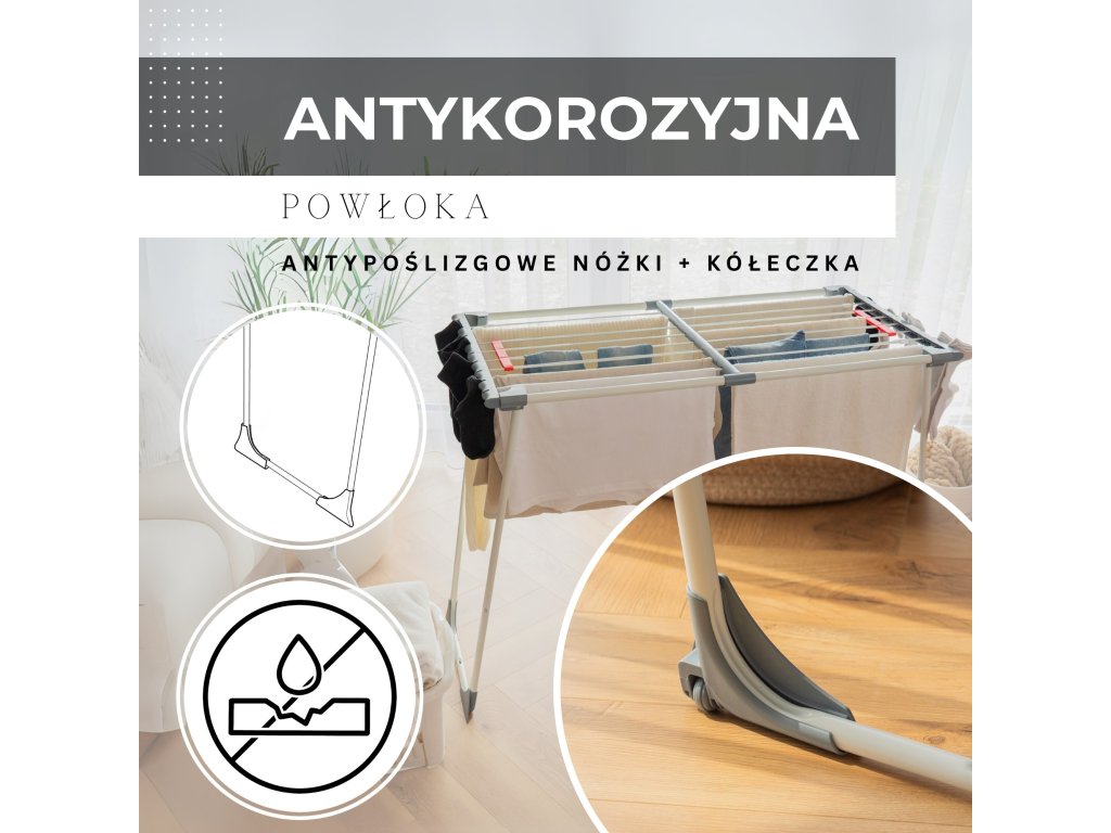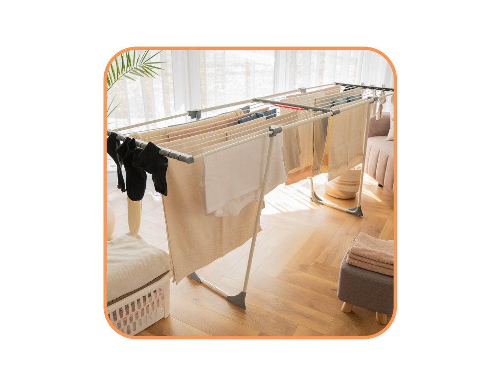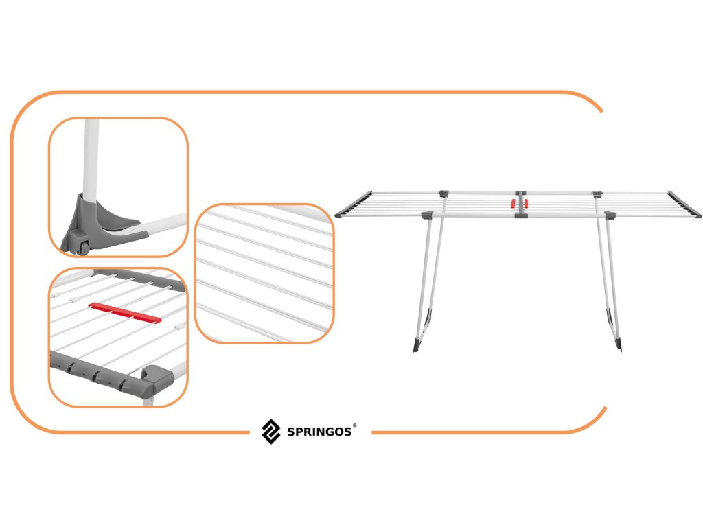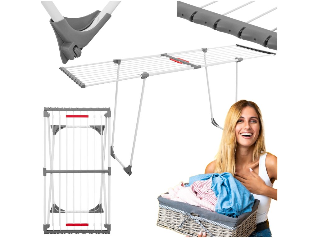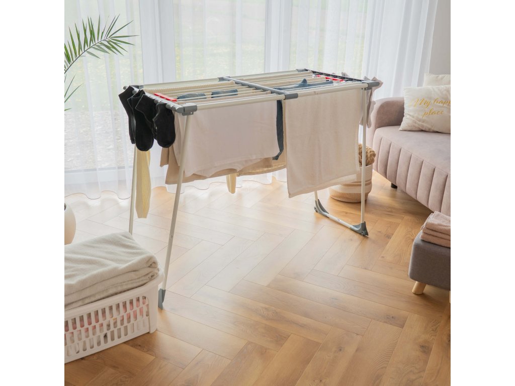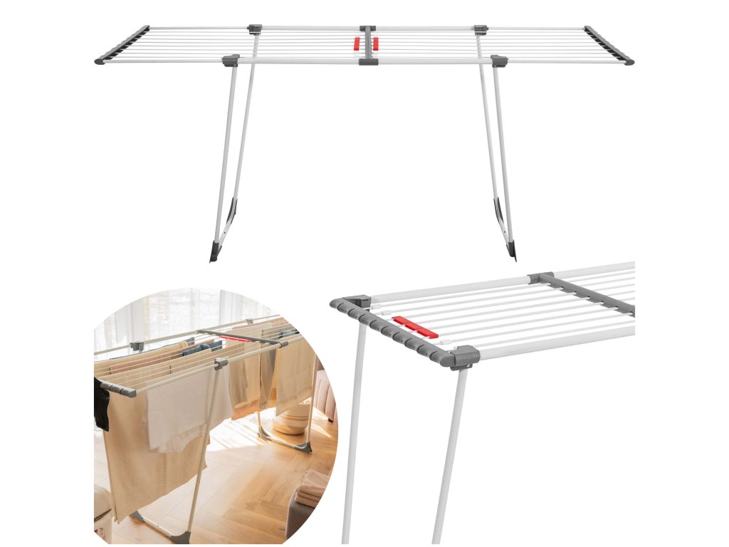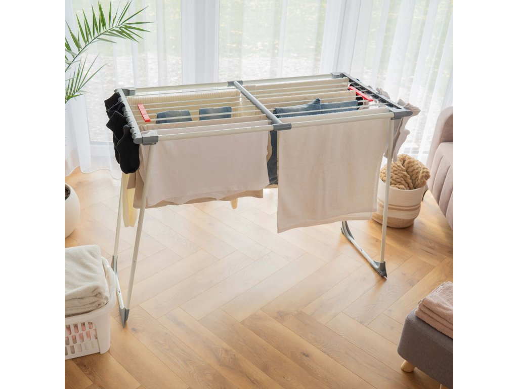 - Bočné prvky rámu majú štrbiny, v ktoré možno zavesiť drobné časti sušenej bielizne.