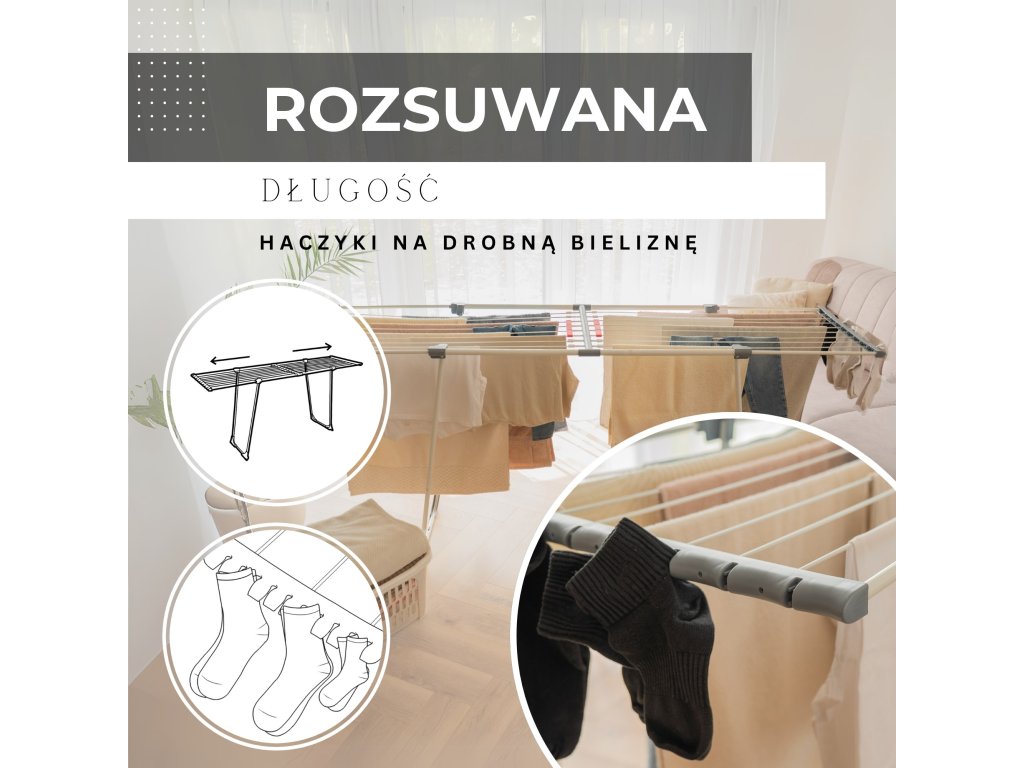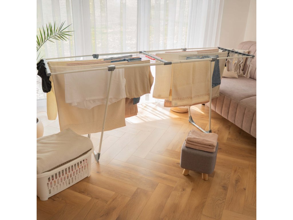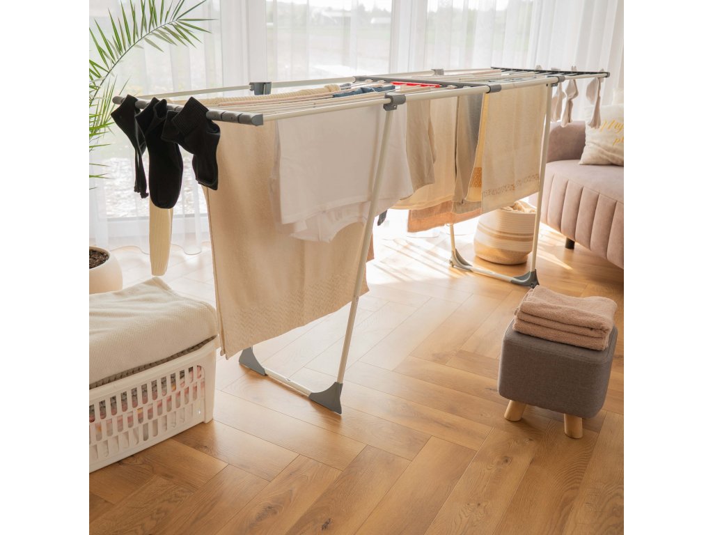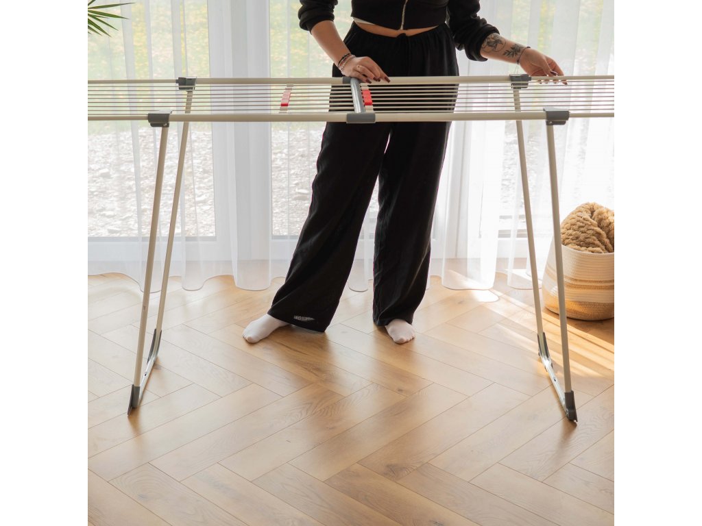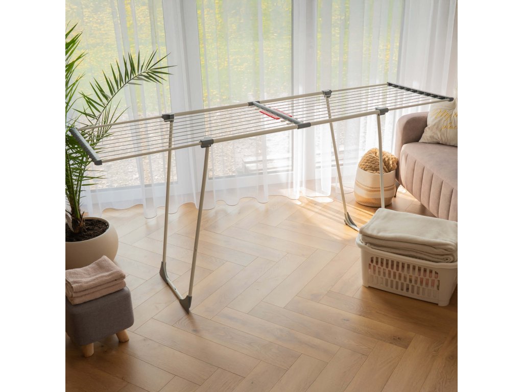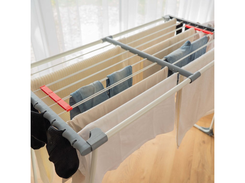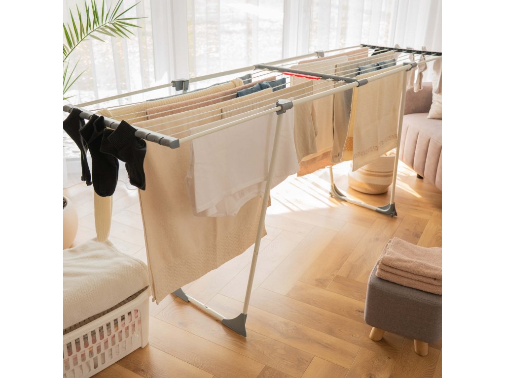 - Sušička sa teleskopicky rozťahuje, čo umožňuje regulovať jej dĺžku.