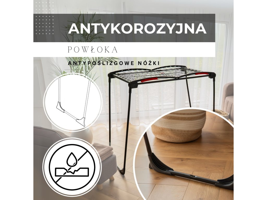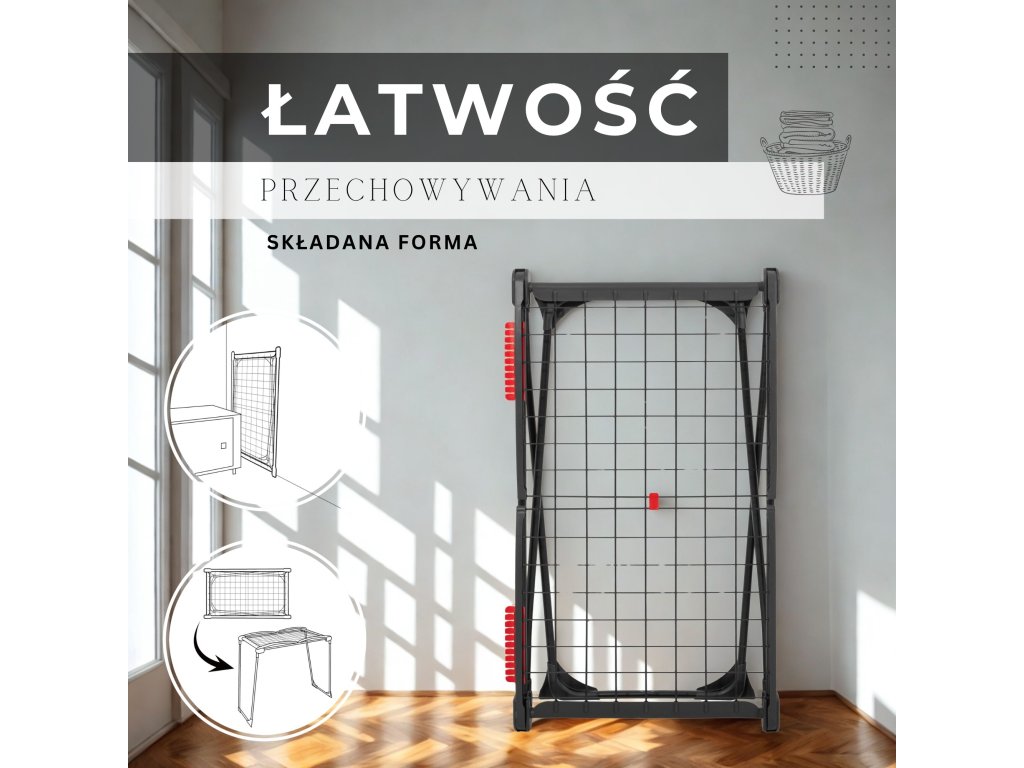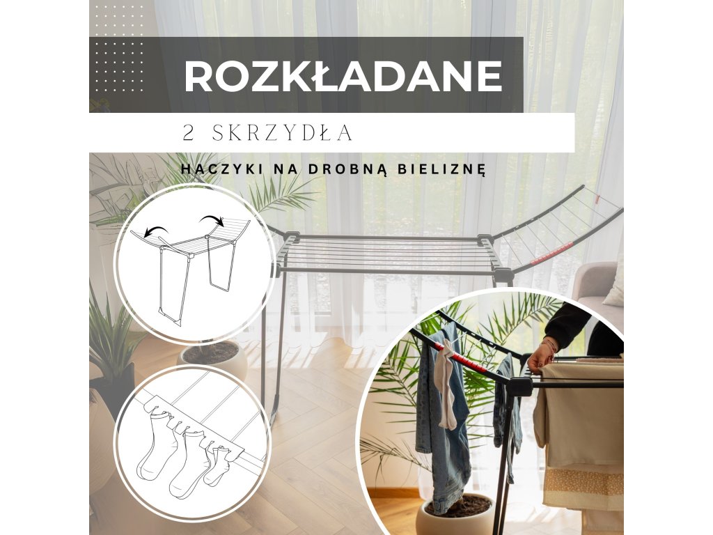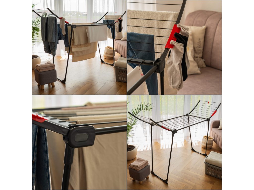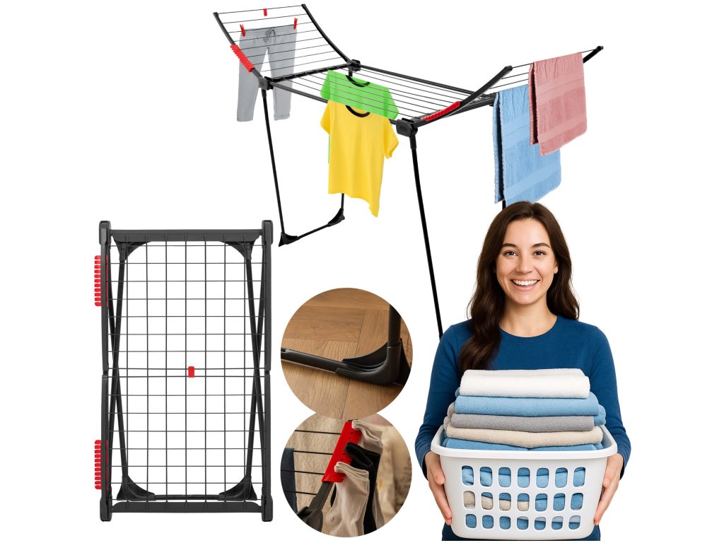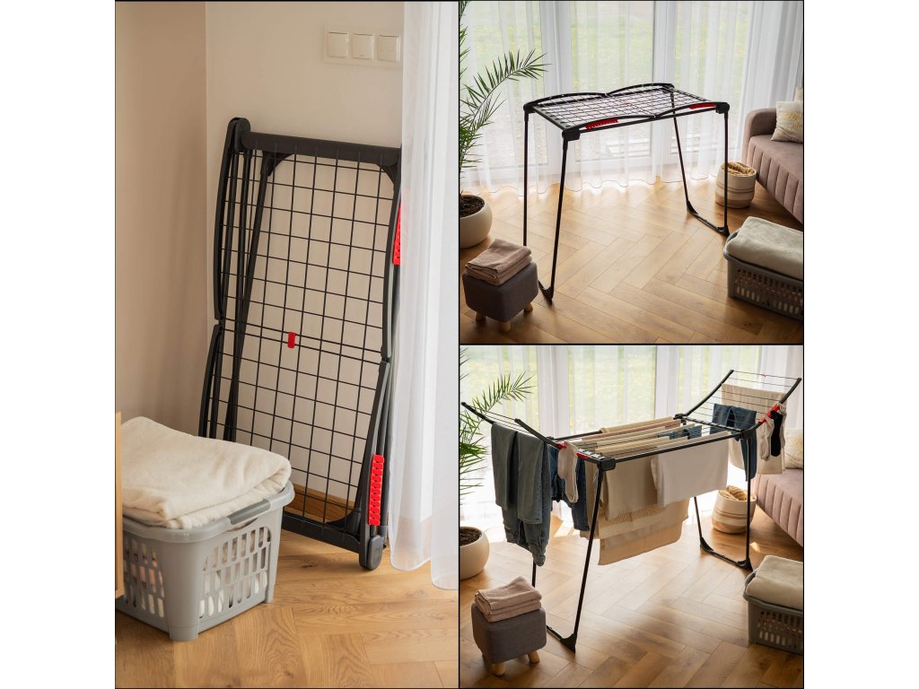 - Sušiak sa skladá z centrálnej časti a 2 rozkladacích krídel.
