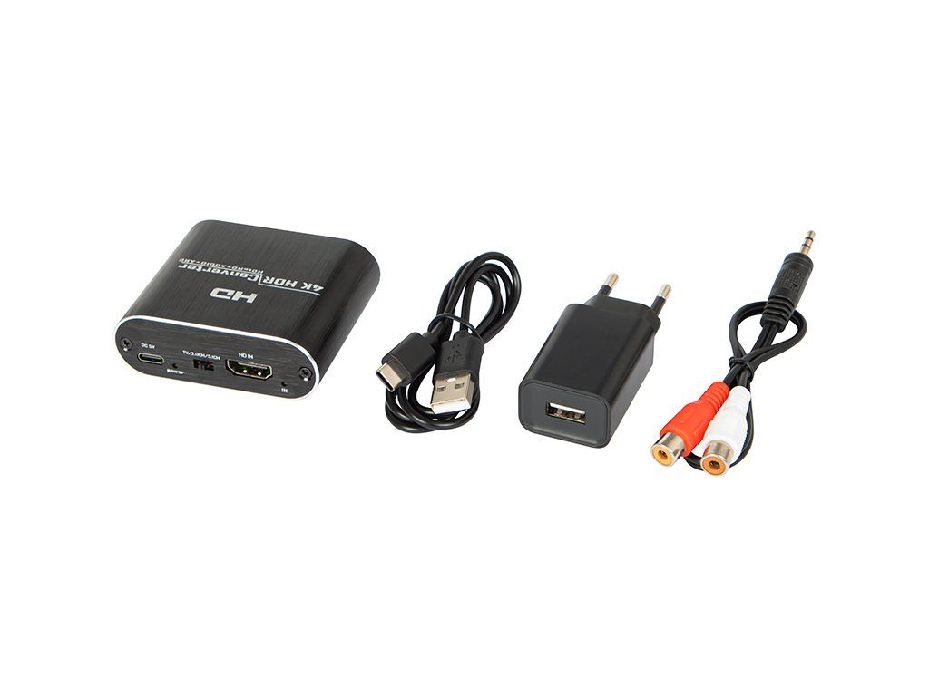 V balení nájdete všetko potrebné na okamžité použitie. Súčasťou je samotný HDMI extraktor, adaptér minijack na RCA, napájací USB kábel, sieťová zástrčka s európskym konektorom a návod na použitie. Produkt je dodávaný v elegantnom balení, takže je vhodný aj ako darček.