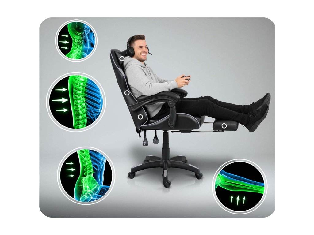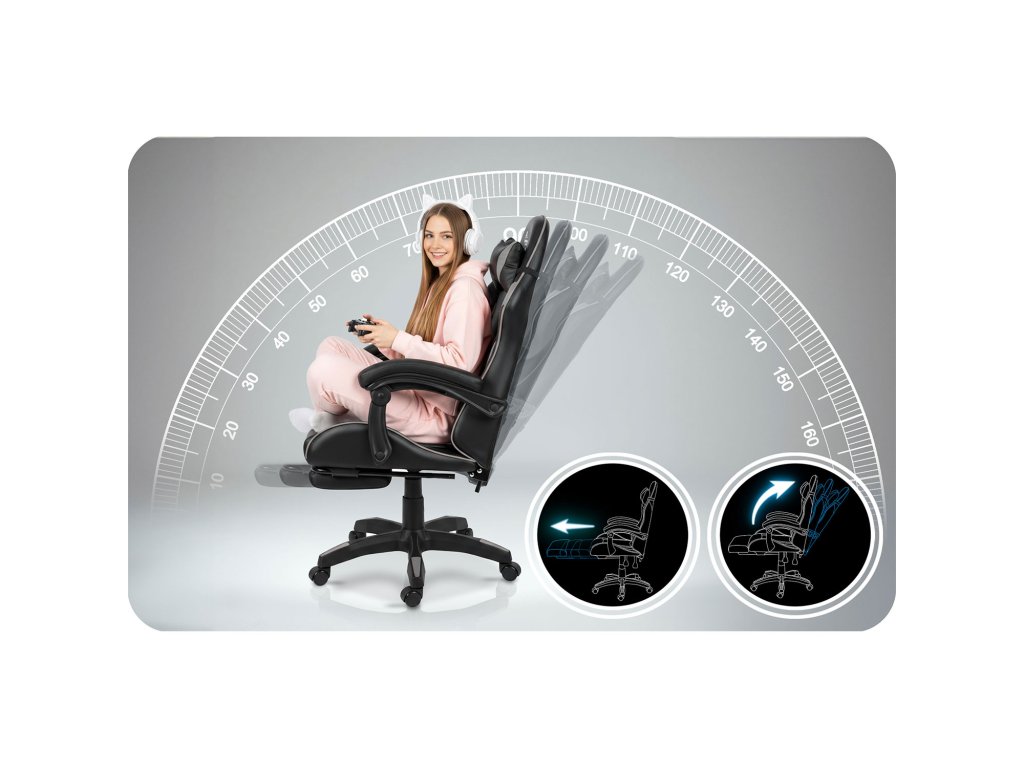 Stačí ľahko nakloniť operadlo, aby ste uvoľnili stavce, zrelaxovali svaly a načerpali novú energiu – aj počas dlhého dňa v kancelárii!
