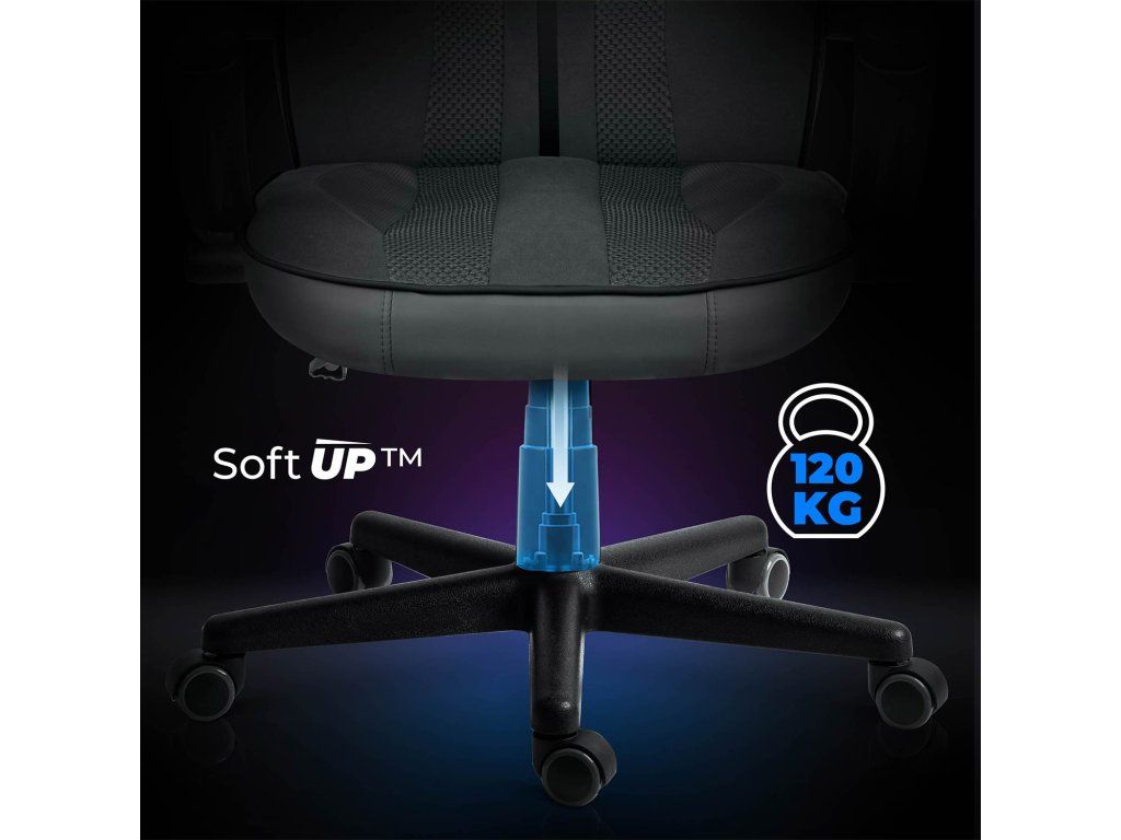 Mechanizmus Soft UP™ umožňuje presné nastavenie výšky herného kresla, vďaka čomu ho dokonale prispôsobíte stolu aj svojej výške. Spevnená konštrukcia a nosnosť do 120 kg zaručujú stabilitu a bezpečnosť aj pri intenzívnom používaní.
