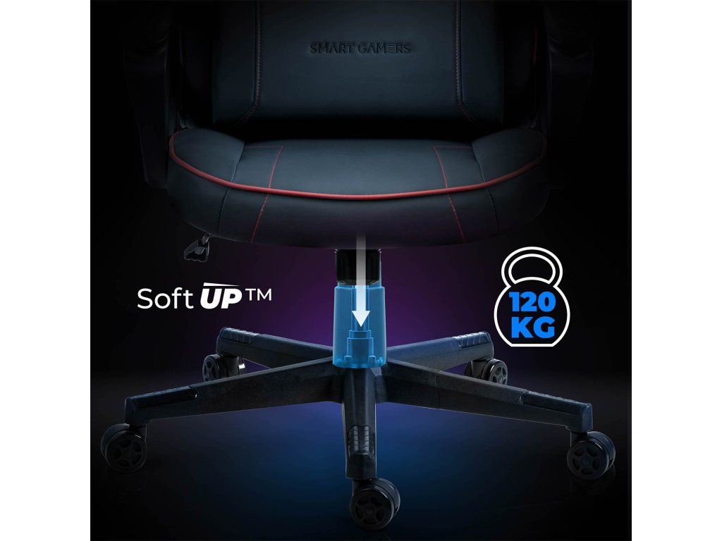 Mechanizmus Soft UP™ umožňuje presné nastavenie výšky hernej stoličky, vďaka čomu ju dokonale prispôsobíte svojmu stolu aj svojej výške. Spevnená konštrukcia a nosnosť do 120 kg zaručujú stabilitu a bezpečnosť aj pri intenzívnom používaní.