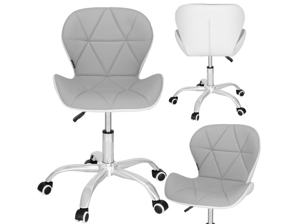 - Stolička čalúnená ekokožou, s mäkkou výplňou, farba čalúnenia sivá spredu, biela zozadu