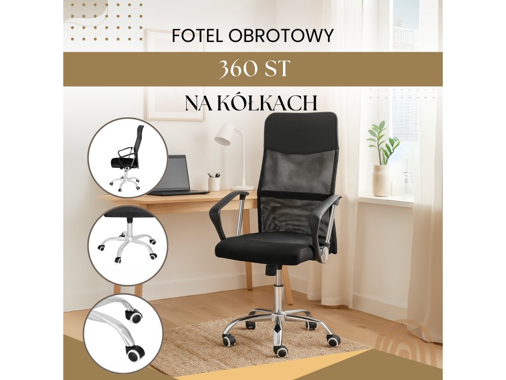 - Základňa z piatich ramien, zakončená kolieskami, koliesko otočné 360 st.