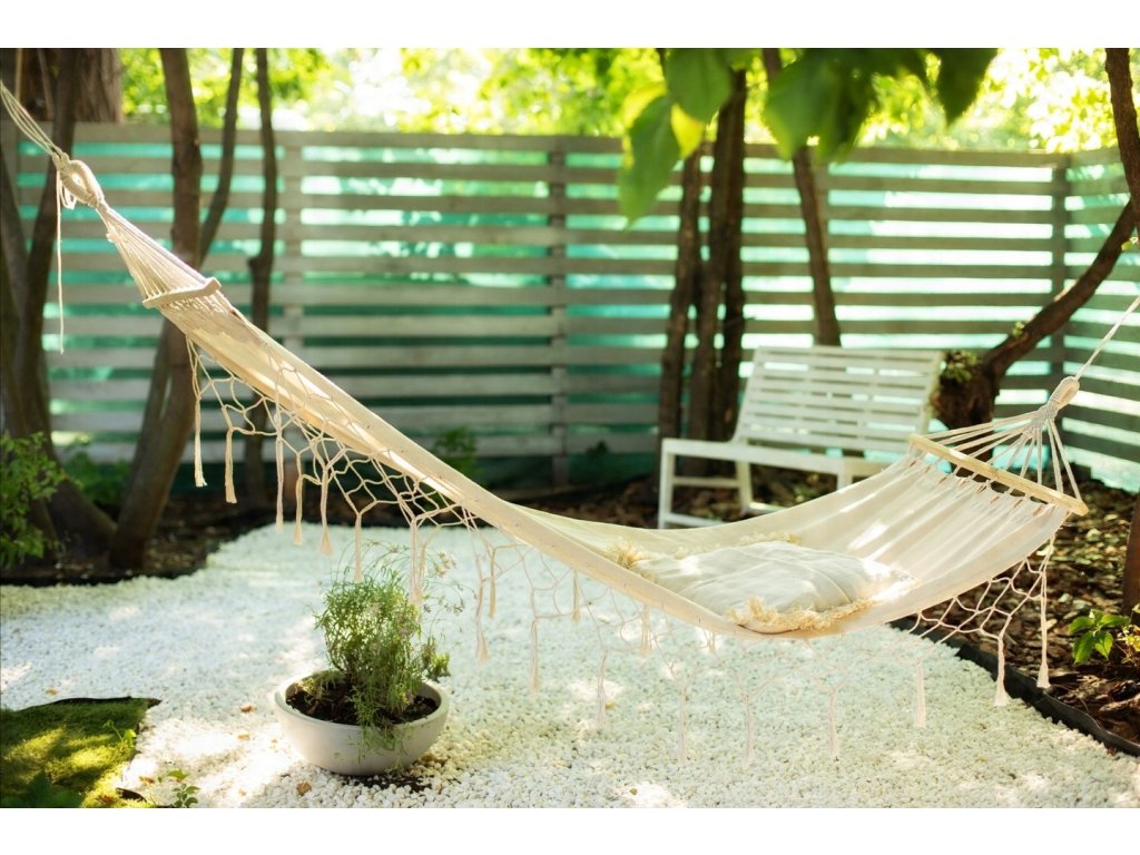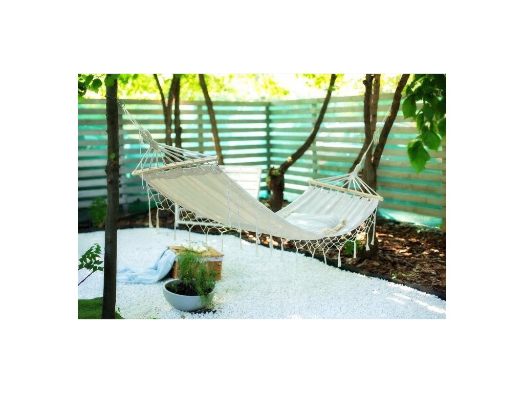 Stuhy s dĺžkou 35 cm pridávajú hojdacej sieti kúzlo a robia z nej mimoriadne štýlový kúsok. Ideálna na odpočinok doma, na terase alebo v záhrade.