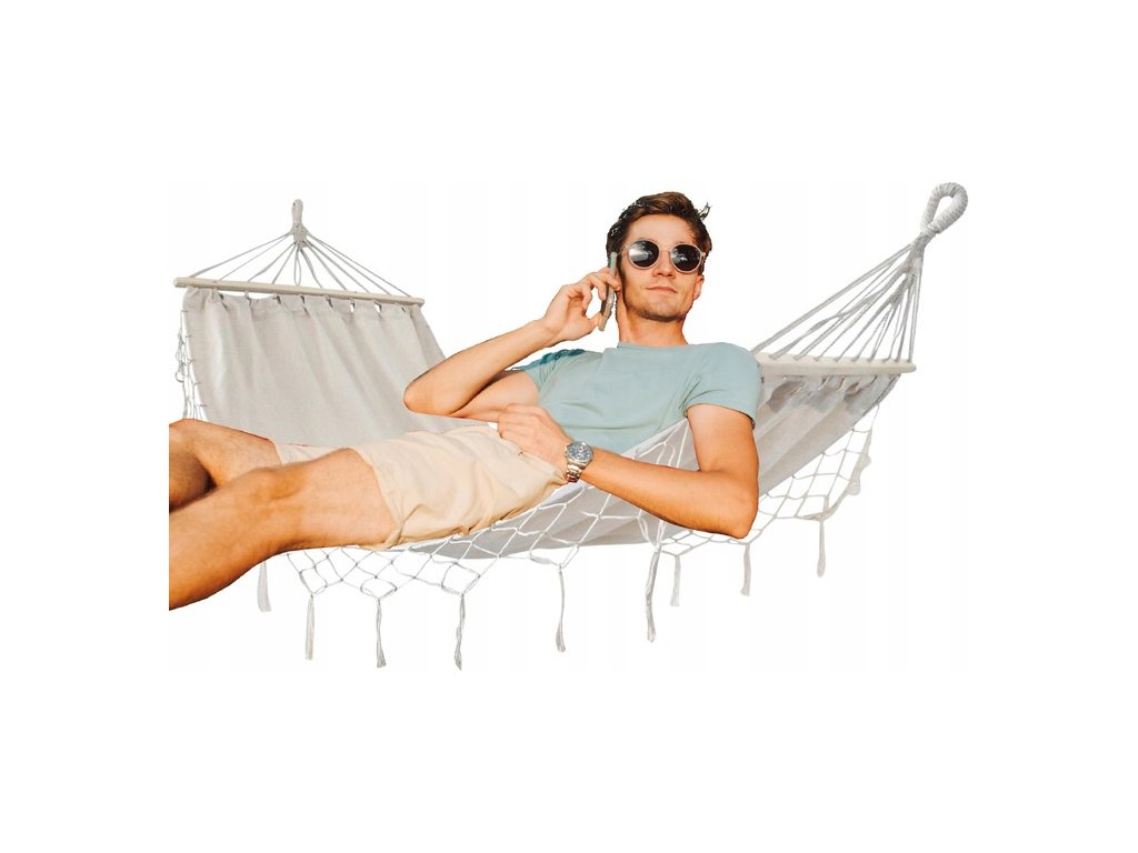 Hojdacia sieť s rozmermi 200x100 cm je oázou relaxu. Vďaka kombinácii bavlny a polyesteru poskytuje nielen pohodlie, ale aj trvanlivosť. Stuhy pridávajú charakter, vytvárajú jedinečnú atmosféru miesta, kde sa nachádza.