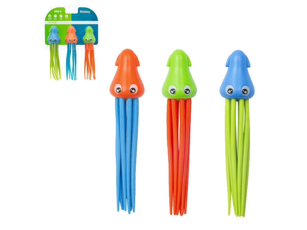 Podvodné chobotničky značky Bestway sú mimoriadne užitočné hračky na oboznamovanie dieťaťa s vodou počas učenia sa plávať. Môžu slúžiť aj na rôzne druhy didaktických a pohybových hier.Vyrobené z pružného, bezpečného materiálu. Hra s nimi je veľmi jednoduchá a zaujímavá. Hračky majú závažie, ktoré spôsobuje, že po vhodení do vody klesajú na dno. Úlohou zúčastnených na hre je vytiahnuť paličky.