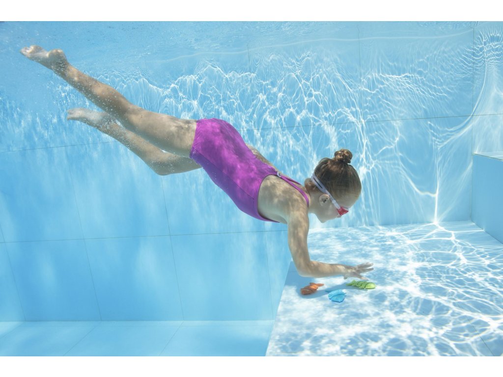 Wrzuć kolorowe rybki Bestway® Squiggle Wiggle™ do basenu i obserwuj, jak się gibają i falują w wodzie aż do samego dna! Dzieci pokochają zabawę w ich łapanie, a przy okazji będą rozwijać swoje umiejętności pływackie.