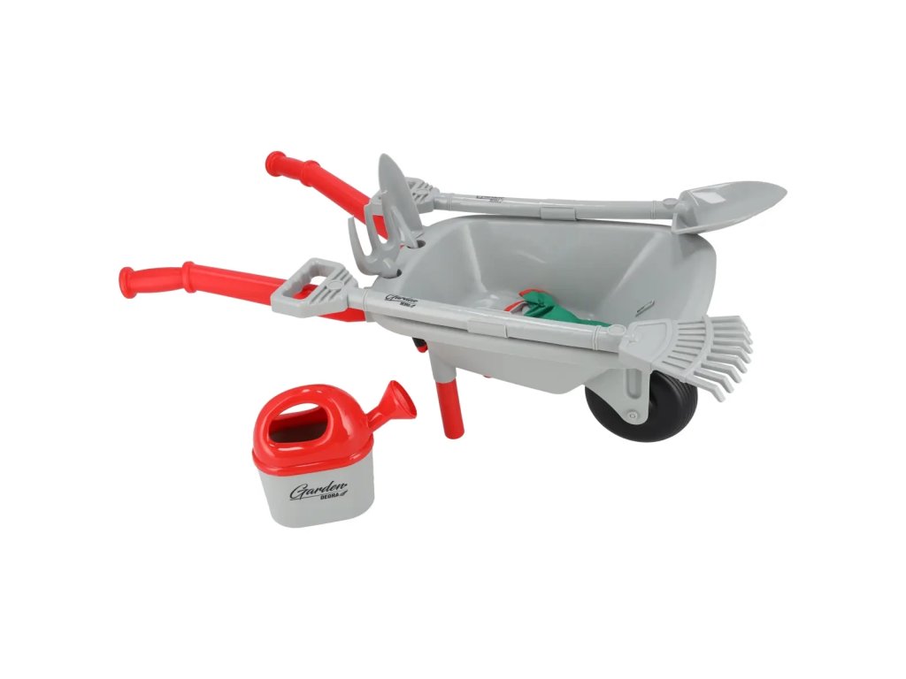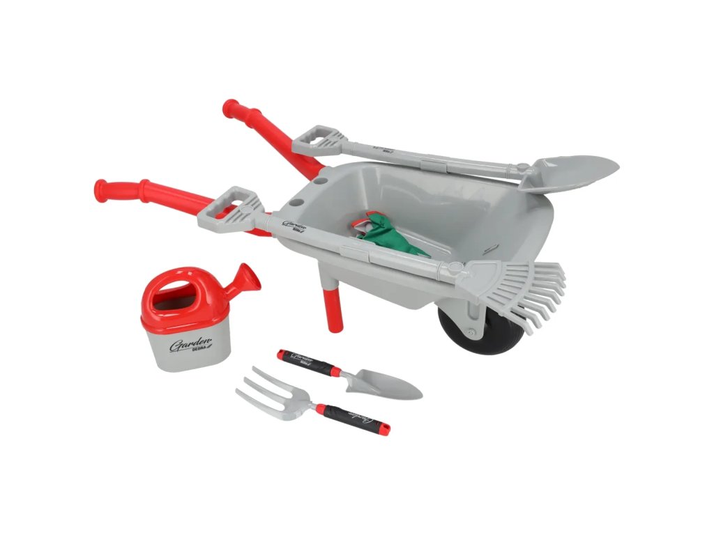 V súprave sa nachádza vozík, lopata, hrabličky, malé hrabličky, malá lopatka, zálievka, detské rukavice a papierová vizitka - celá táto súprava robí, že naša ratolesť sa môže cítiť ako skutočný záhradník!