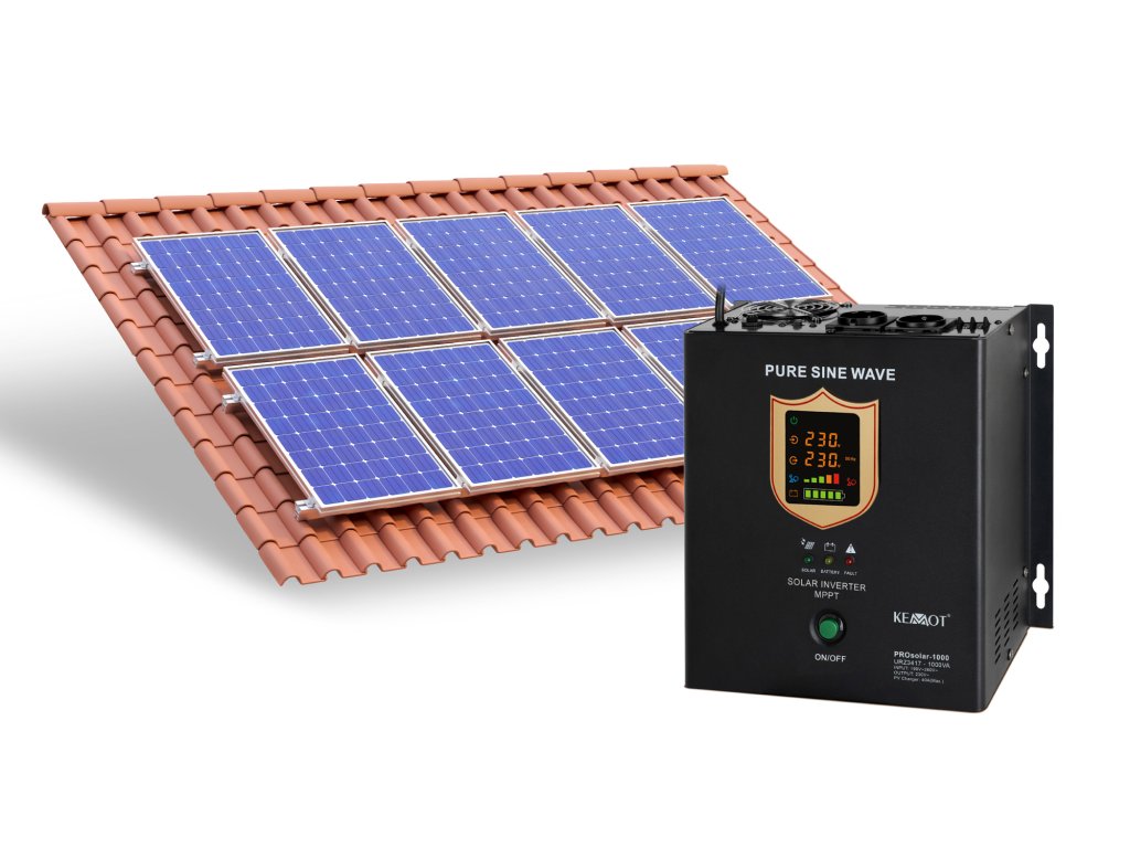 Solárny striedač KEMOT PROsolar-700 s menovitým výkonom 700 W umožňuje pracovať s fotovoltaickými modulmi a elektrickou sieťou vďaka svojej rozsiahlej funkčnosti. Vďaka priamemu vstupu do solárnych panelov zariadenie využíva slnečnú energiu na napájanie spotrebičov. Zariadenie je vhodné na napájanie elektrických zariadení vyžadujúcich striedavé napätie 230 V a ako núdzový zdroj zabezpečuje bezporuchovú prevádzku zariadení vyžadujúcich nepretržité napájanie, napr. čerpadiel ústredného kúrenia, poplašných a monitorovacích systémov. Prevodník KEMOT PROsolar-700 má robustný kryt vybavený držiakom, ktorý umožňuje zavesenie na stenu, napríklad v kotolni alebo v elektrickom rozvádzači.