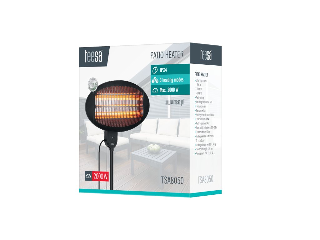 Radi trávite voľný čas na balkóne alebo terase? Dbajte na to, aby tieto chvíle nič nenarušilo ani počas chladných večerov. Elektrické sálavé vykurovacie teleso Teesa s možnosťou výberu z troch režimov vykurovania bude pre vás ideálnym riešením. Vďaka rýchlo sa zahrievajúcim rúrkam z kremenného skla stačí ohrievač zapnúť a okamžite pocítite príjemné teplo, ktoré sa šíri okolo vás.