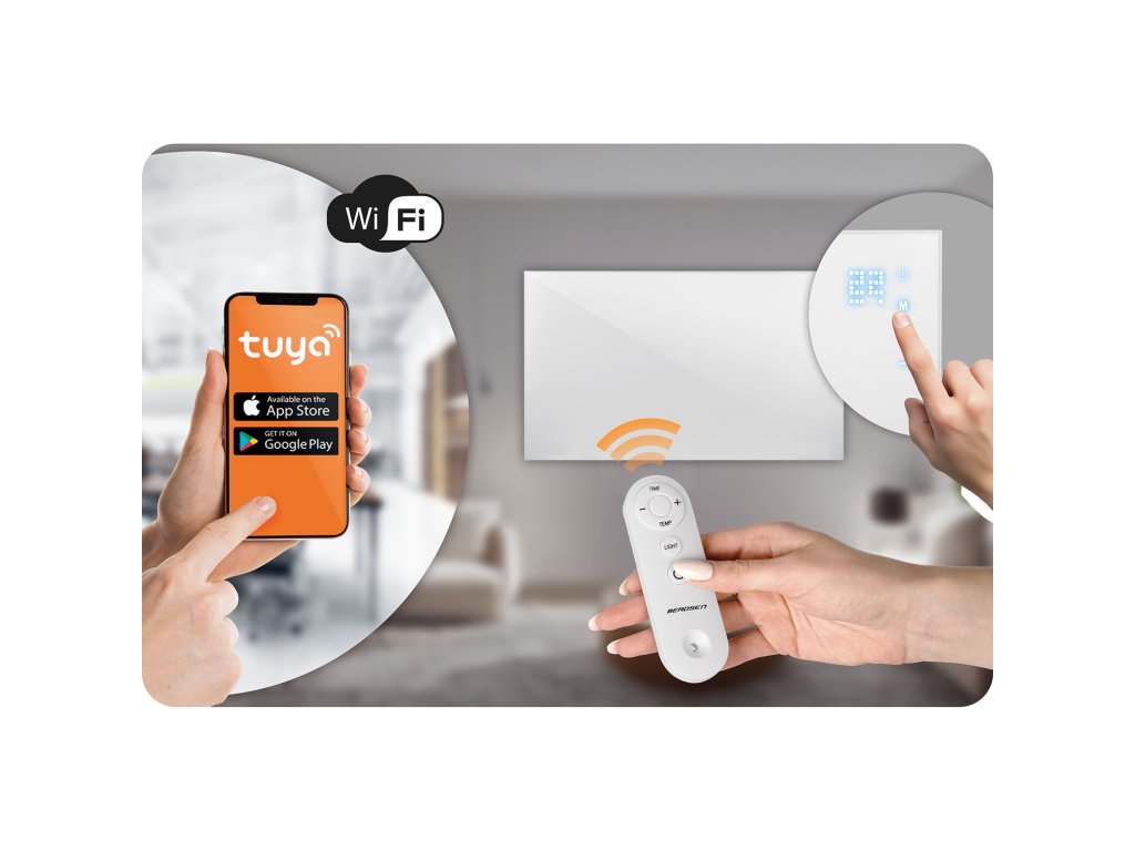 600 W | JEDNODUCHÉ POUŽITIE | RÝCHLE | BEZPEČNÉ | TECHNOLÓGIA FAR INFRARED | WI-FI PRIPOJENIE | APLIKÁCIA TUYA | DIAĽKOVÝ OVLÁDAČ | DOTYKOVÝ PANEL | ČASOVAČ 1-9 H | REGULÁCIA 16-37