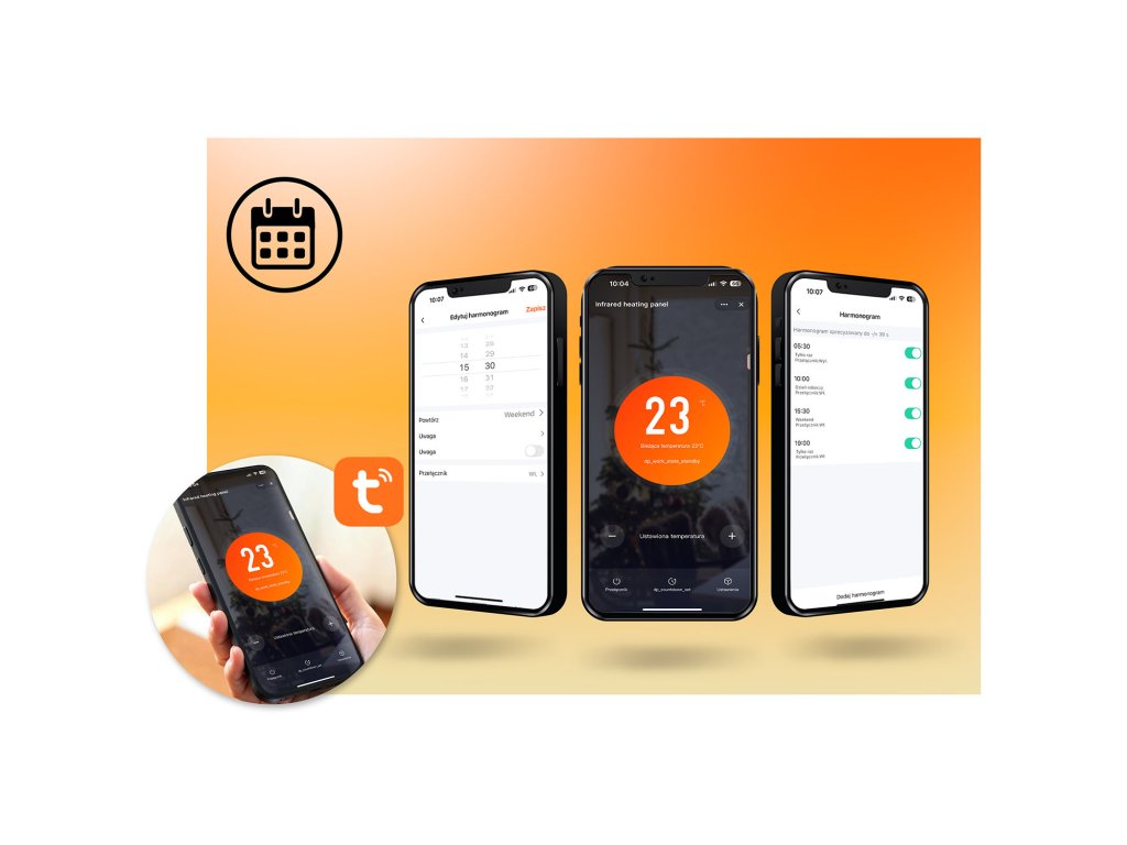 Vďaka Tuya Smart na telefóne, prepojenej s panelom cez bezdrôtovú sieť Wi-Fi, môžete jednoducho spravovať vykurovanie vo vašom dome z akéhokoľvek miesta.