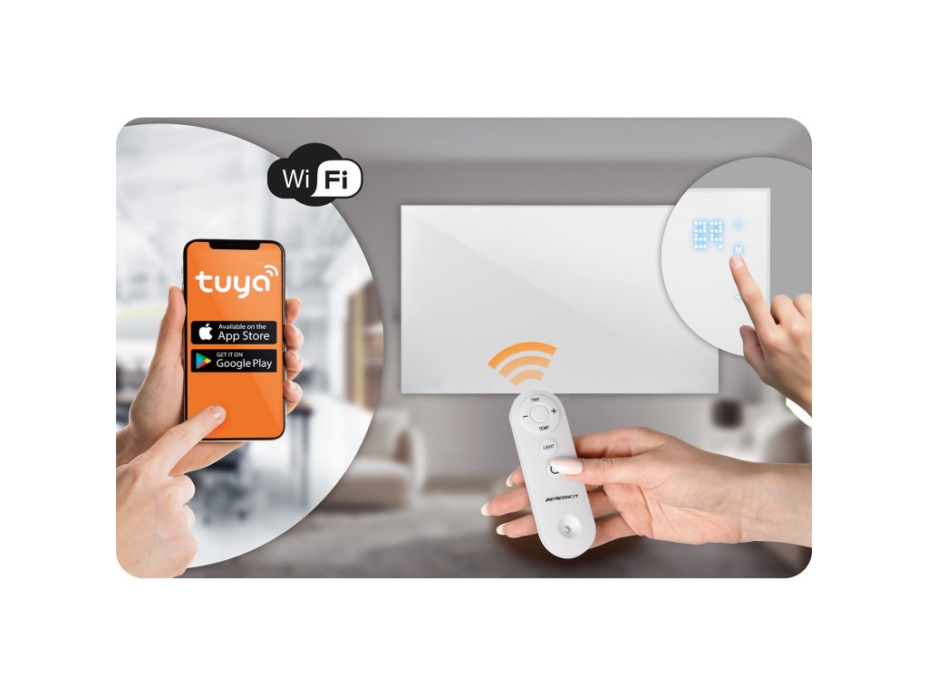 720 W | JEDNODUCHÉ NA POUŽITIE | RÝCHLE | BEZPEČNÉ | TECHNOLOGIA FAR INFRARED | WI-FI PRIPOJENIE | APLIKÁCIA TUYA | DIALKOVÝ OVLÁDAČ | DOTYKOVÝ PANEL | ČASOVAČ 1-9 H | REGULÁCIA 16-37
