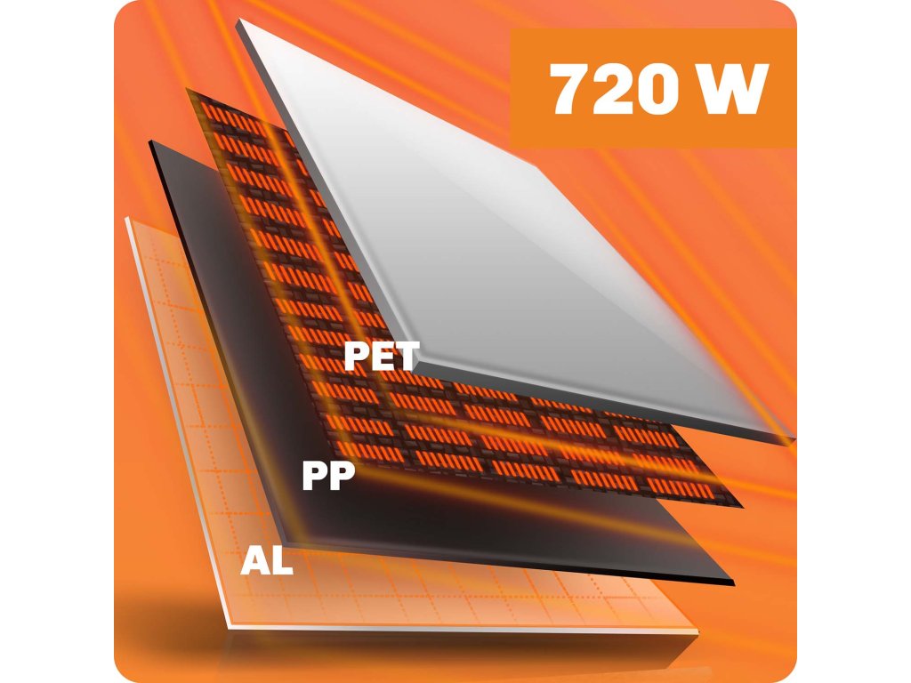 Infračervený ohrievací panel 720 W, s aplikáciou Tuya a dotykovým panelom