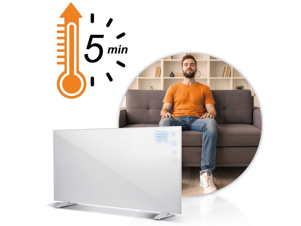Rýchle vykurovanie — teplo pociťované už po 5 minútach! Ideálne pre rýchlu zmenu teploty v miestnosti.