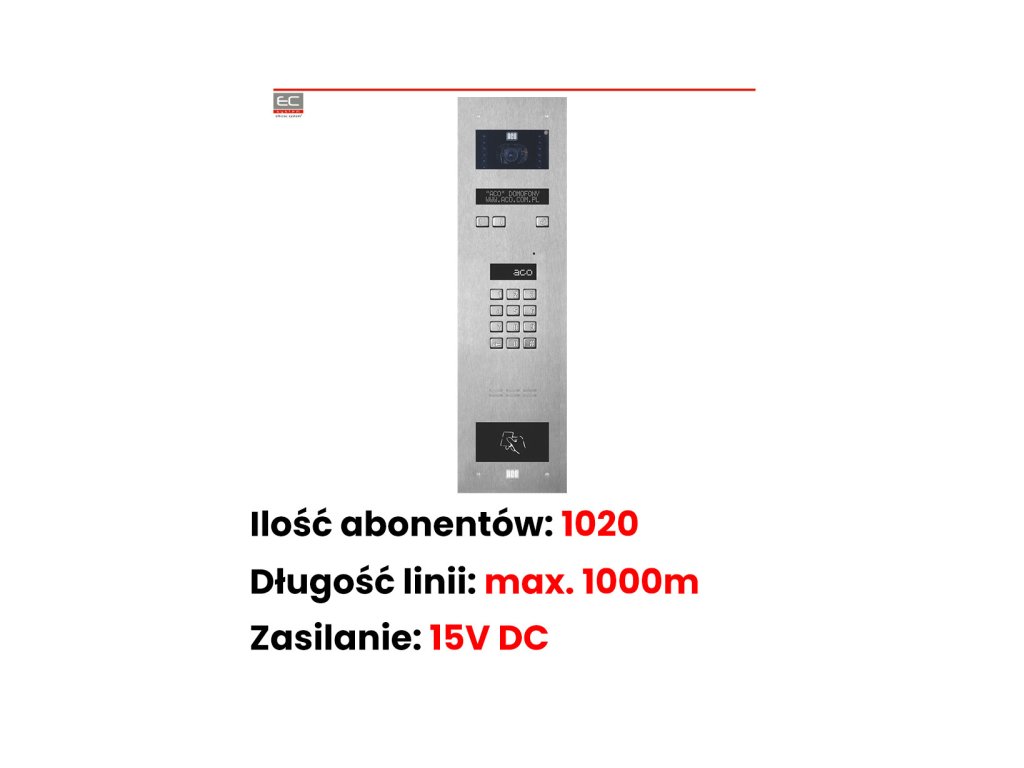 - Moduly: kódový zámok, farebná kamera objektív 2.8mm, elektronický zoznam nájomníkov, čítačka bezkontaktných prvkov