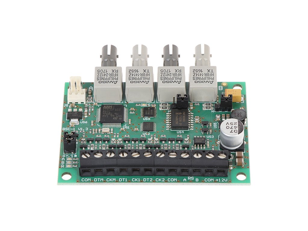 - Podpora dvoch párov optických vlákien umožňujúca prepojenie viacerých modulov v reťazci