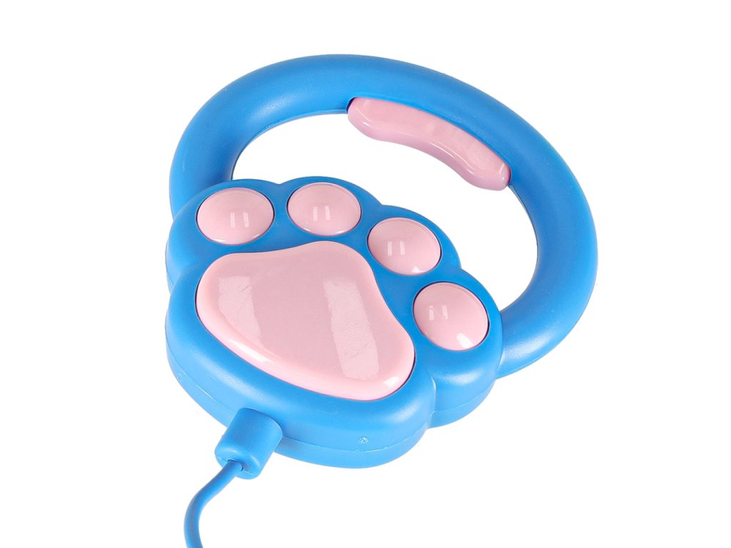 - Farba: biely/sivý pes, hnedý obojok, modro-ružové vodítko