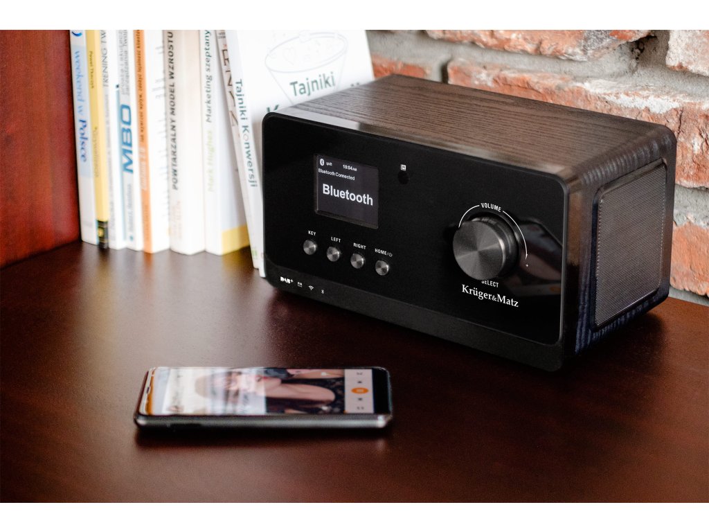 Chcete si vypočuť svoj obľúbený zoznam skladieb uložený v telefóne alebo v prehrávači MP3. Pripojte svojezariadenia cez zásuvku AUX alebo Bluetooth a vychutnajte si výkon reproduktorov internetového rádia KM 816 .